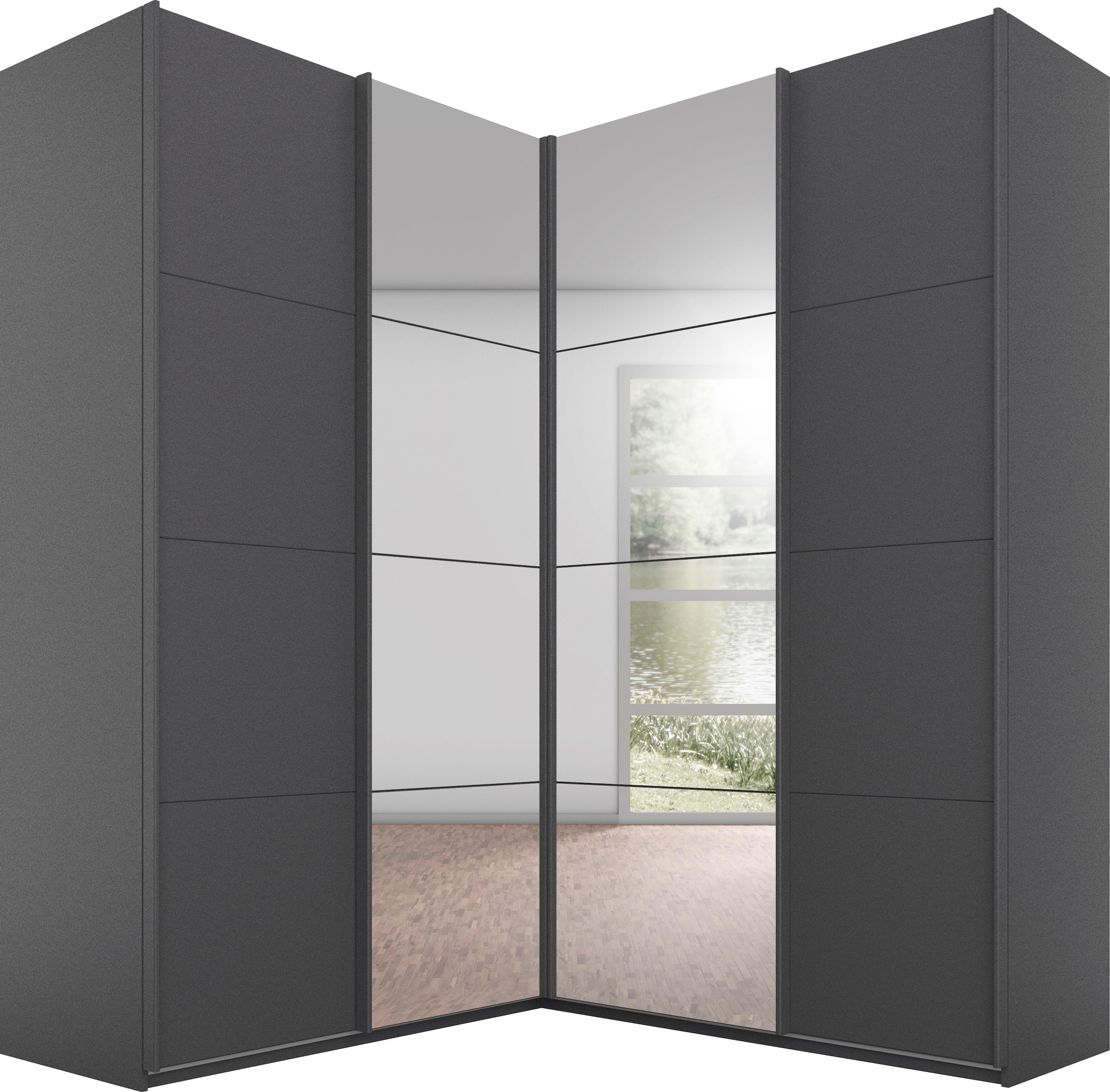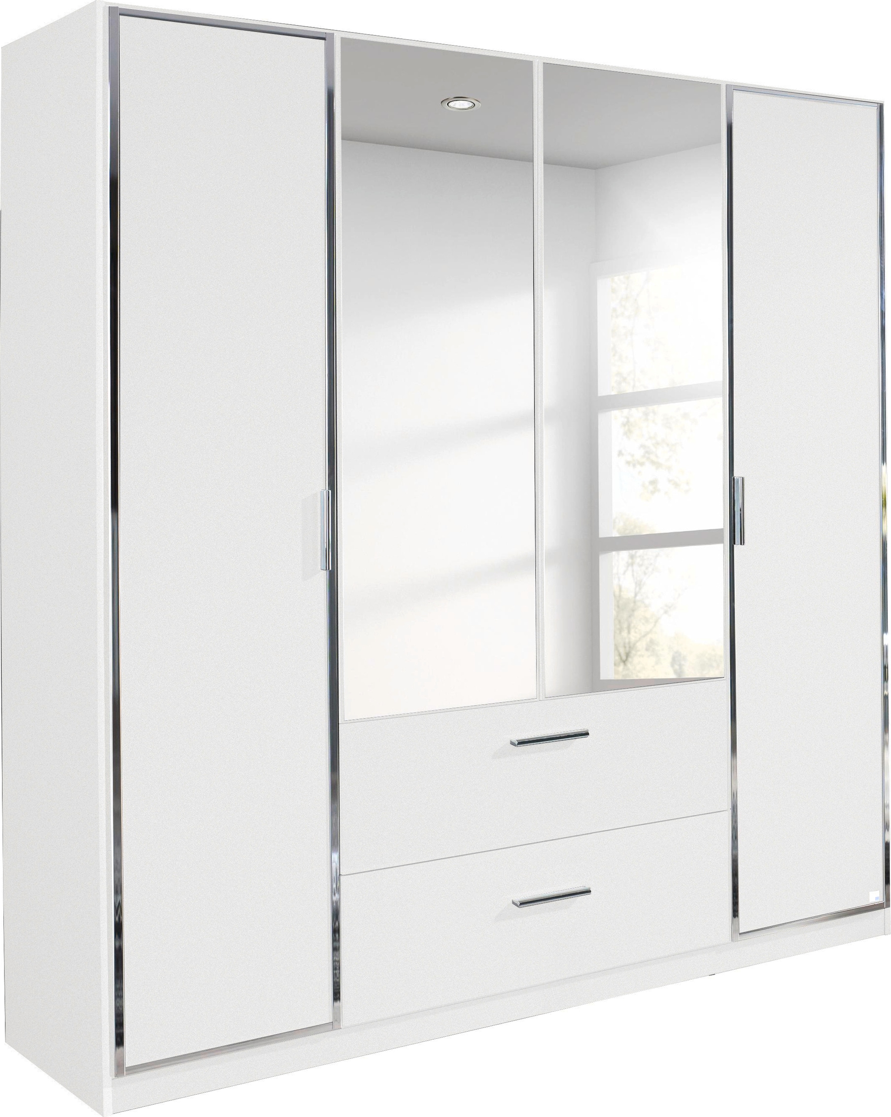 rauch Schwebetürenschrank »Kleiderschrank Schrank Ankleide Garderobe Schlafzimmerschrank MEMPHIS« Breiten: 180/225/270 cm, Höhe 210 cm, mit Spiegel und Metallgriffleisten in Weiß MADE IN GERMANY