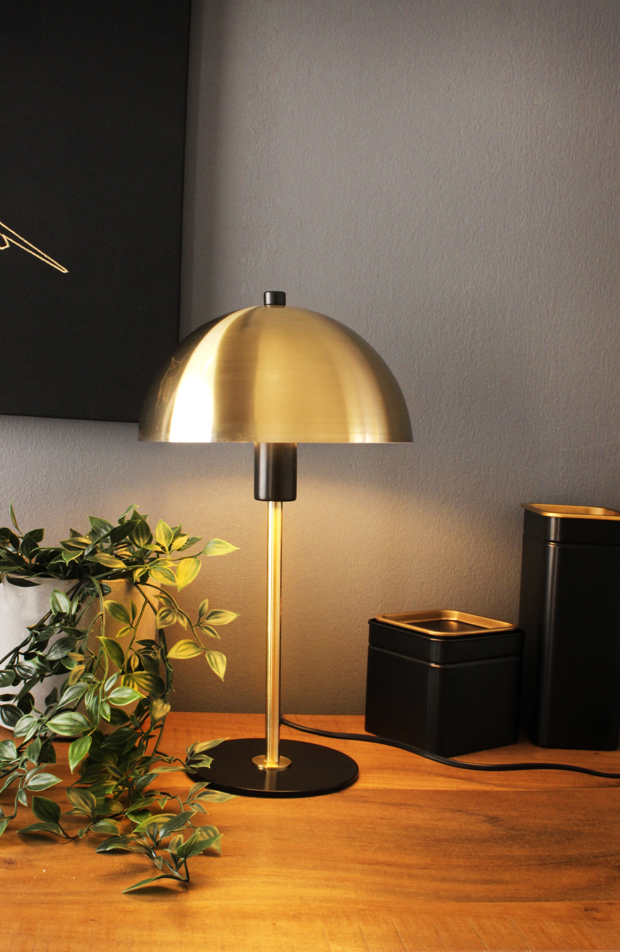 - ECO-LIGHT Tischlampe Vega, moderne Tischleuchte in Schwarz/Messing, Nachttischlampe, 1xE14, Wohnzimmerlampe, inkl.Kabelschalter, austauschbares Leuchtmittel