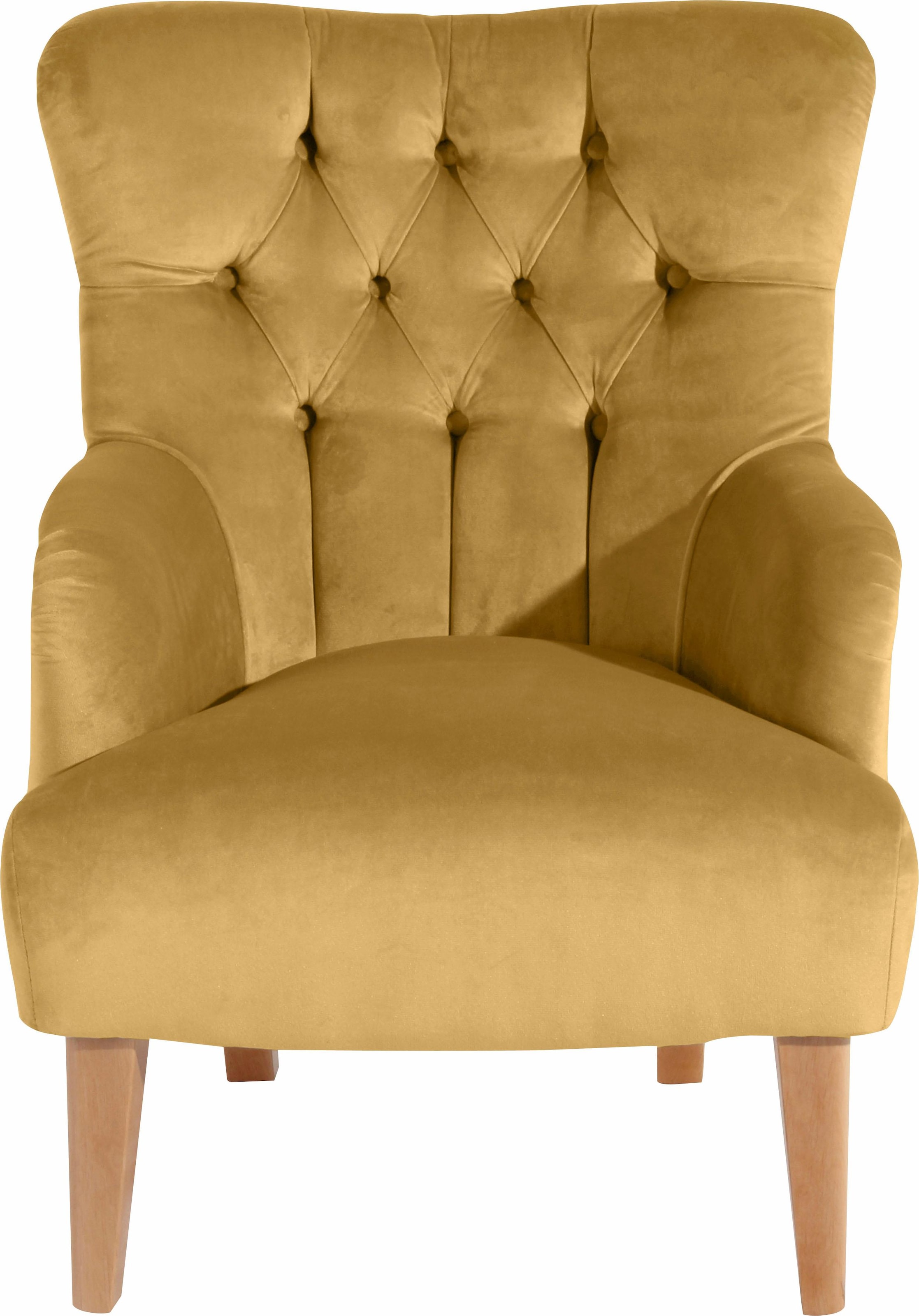 Max Winzer® Chesterfield-Sessel »Bradley, Loungesessel, Chesterfield Optik in aktuellen Farben, bequem« hohe Rückenlehne mit edler Knopfheftung, Retro und modern, hoher Fuß