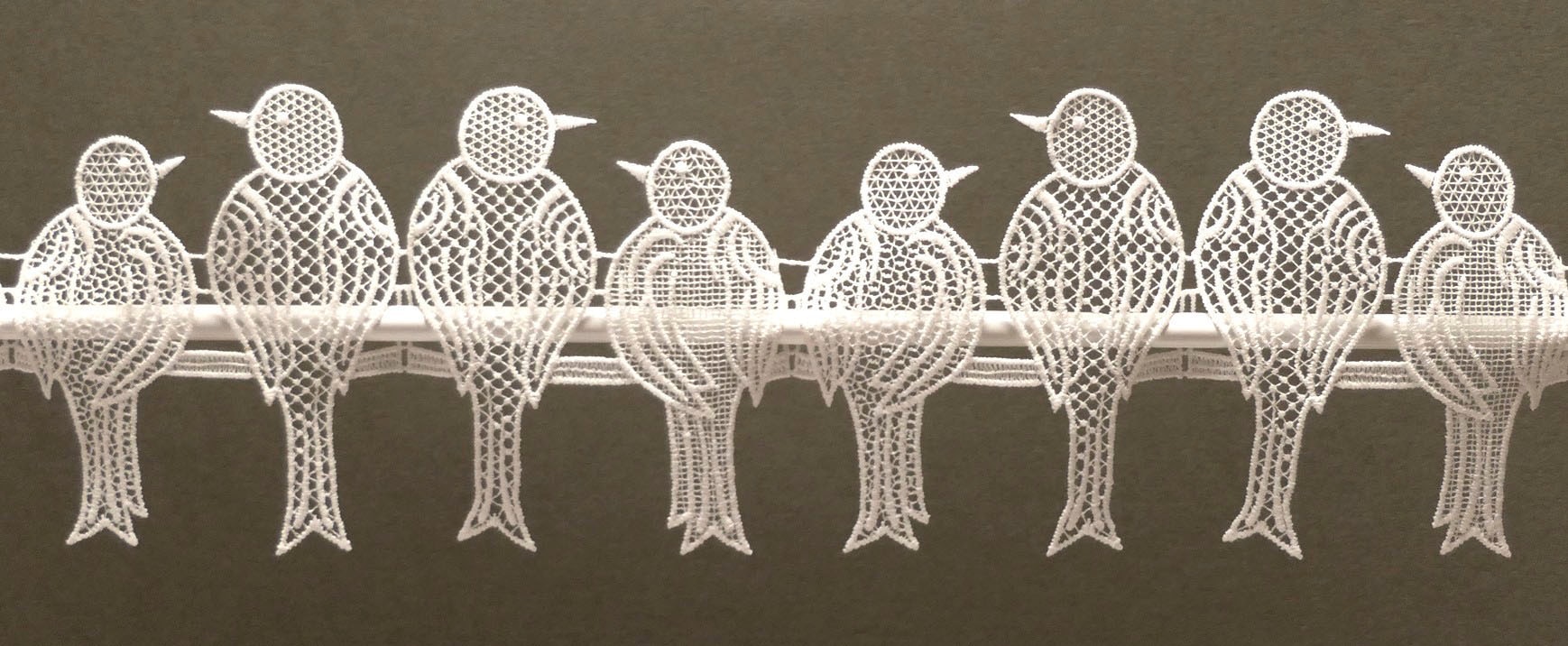 Diese Fensterdekoration aus dem Hause Stickereien und Textilien Plauen kann einfach auf Ihre Gardinenstange gezogen, und im Fensterrahmen befestigt werden. Die Spatzen sind alle 11 cm schnittfest trennbar und können somit individuell für Ihr Fenster zugeschnitten werden.