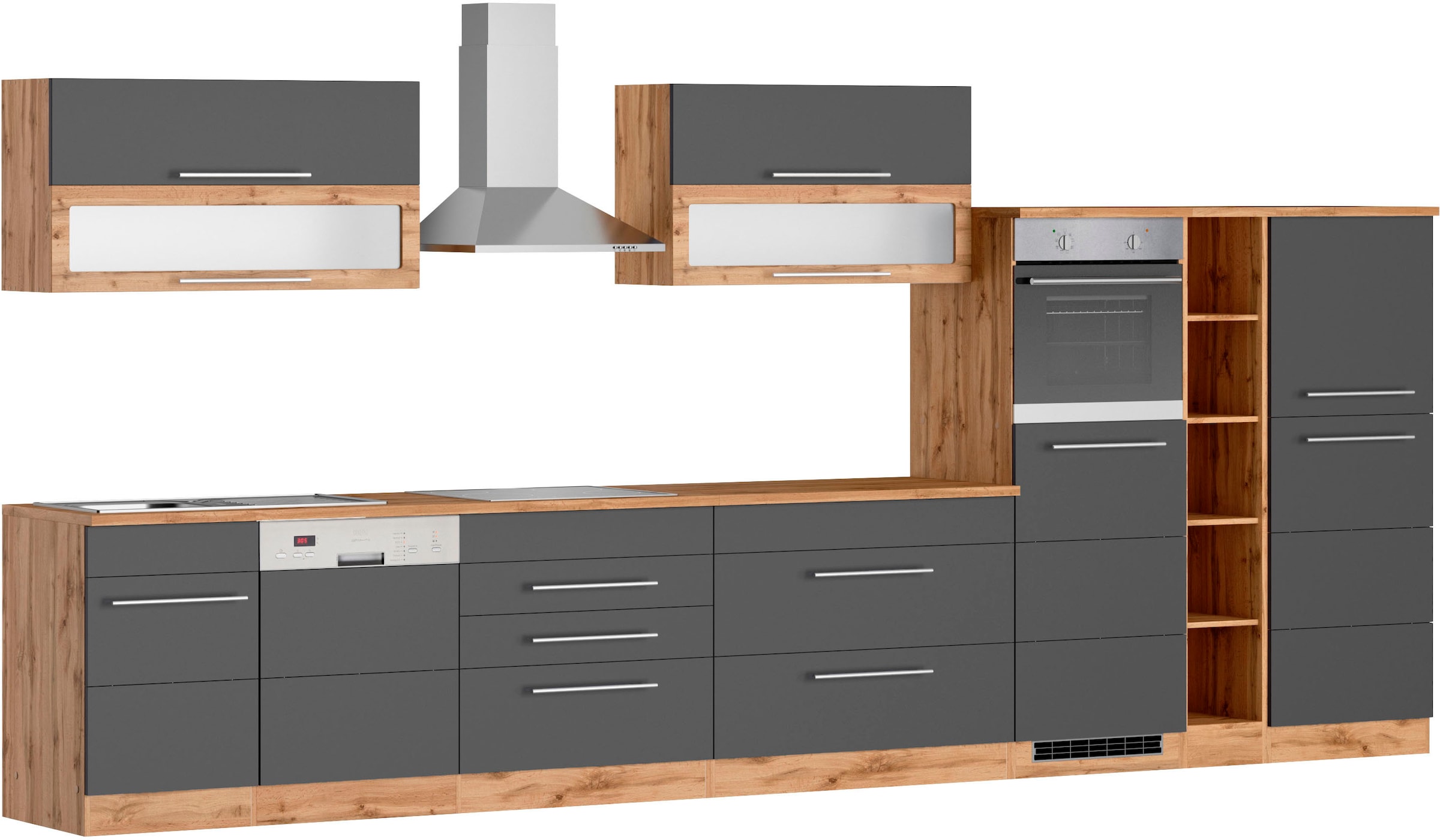- Küchenzeile »KS-Wien« Breite 440 cm, wahlweise mit E-GerätenKOCHSTATIONUrsprünglicher PreisUVP 2.469,00 €Rabatt- 648,01 €Aktueller Preisab 1.820,99 €+1 Farbe
