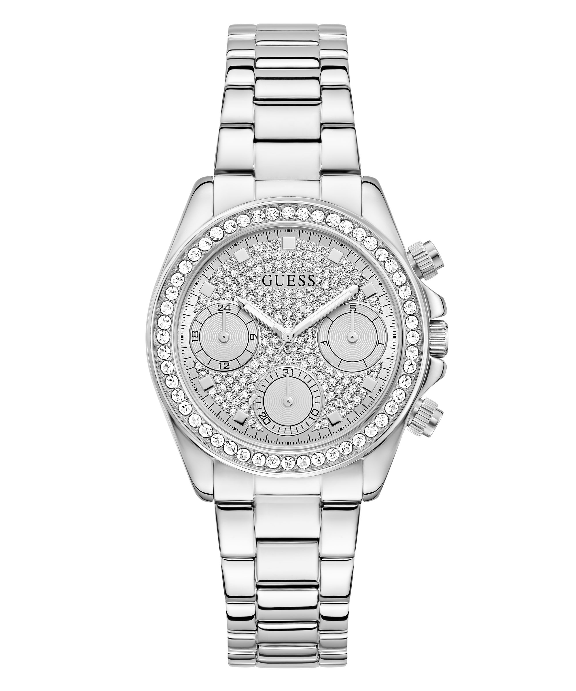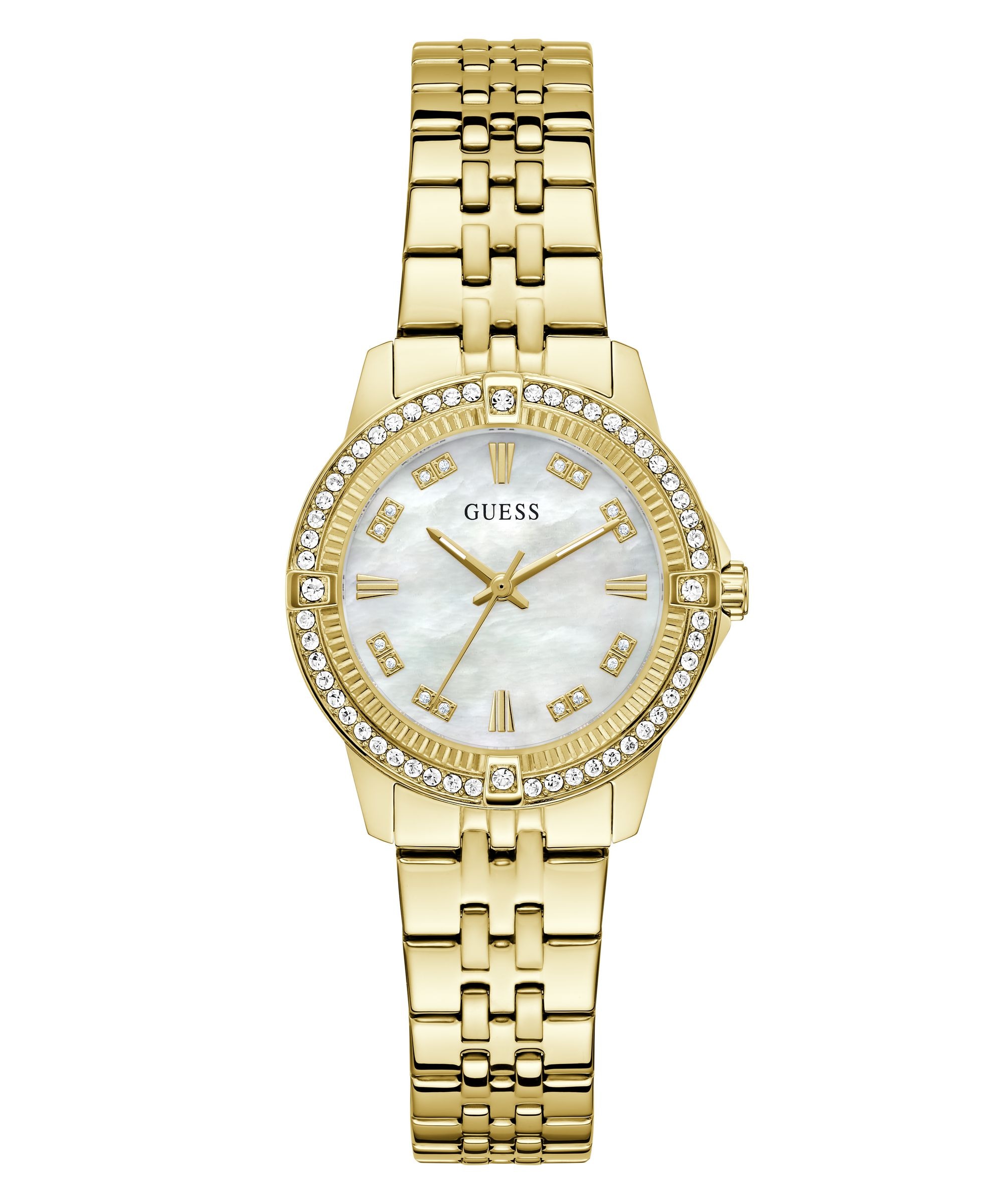 - Quarzuhr »DESIRE« Armbanduhr, Damenuhr, Kristallsteine, Mineralglas, EdelstahlarmbandGuessUrsprünglicher PreisUVP 179,00 €Rabatt- 19 %Aktueller Preis143,99 €