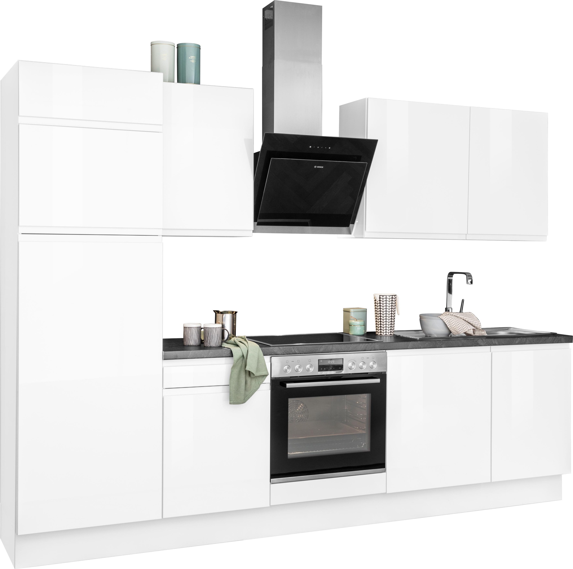 - KOCHSTATIONKüchenzeile »KS-Milan« 300 cm breit, viel Stauraum, wahlweise mit E-Geräten
