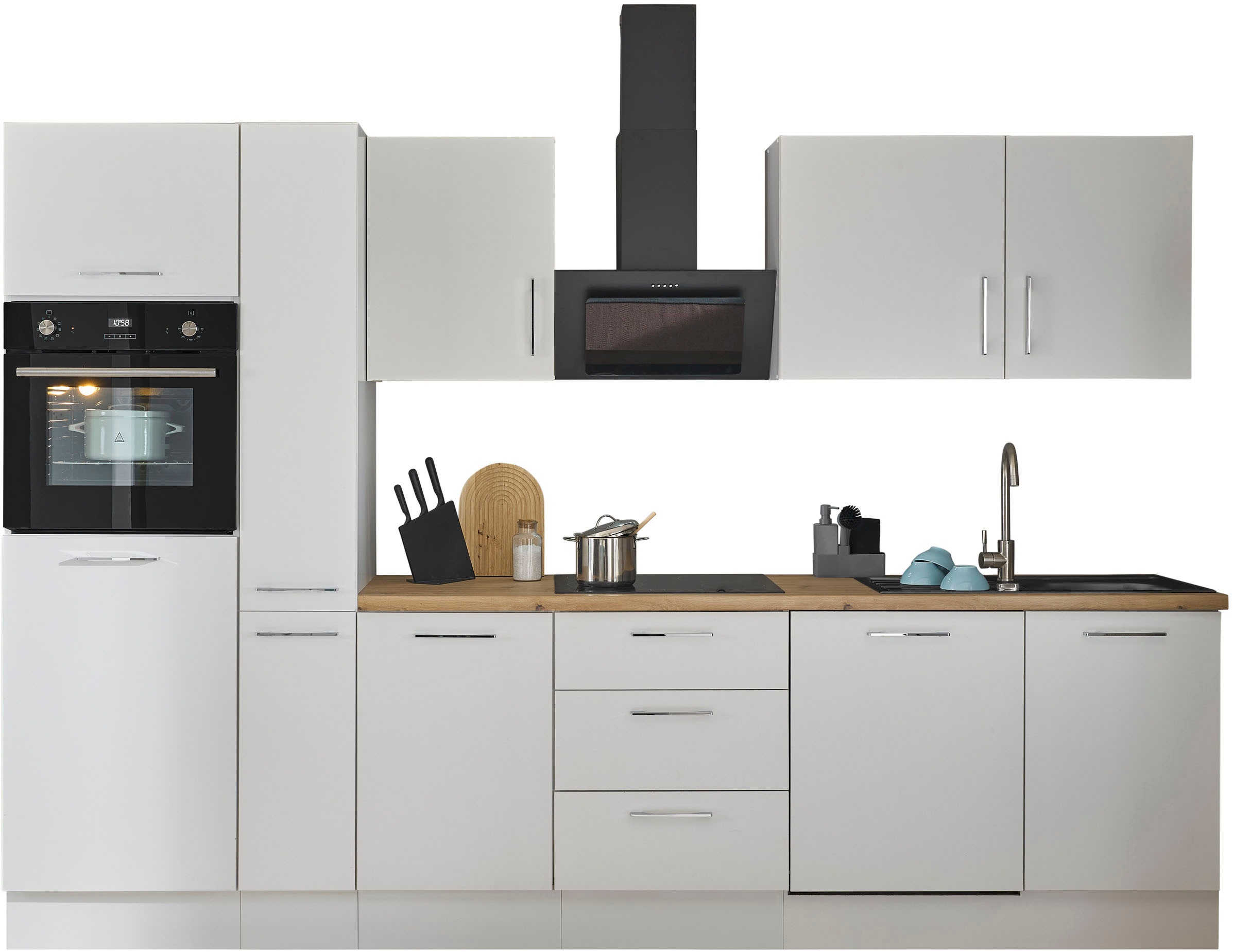 - Küchenzeile »Turin« Breite 310 cm, wahlweise mit E-GerätenBASIC by BalculinaAktueller Preis3.585,99 €GeschirrspülerProduktdatenblattKühl-GefrierkombinationProduktdatenblattDunstabzugshaubeProduktdatenblattHerd-SetProduktdatenblatt