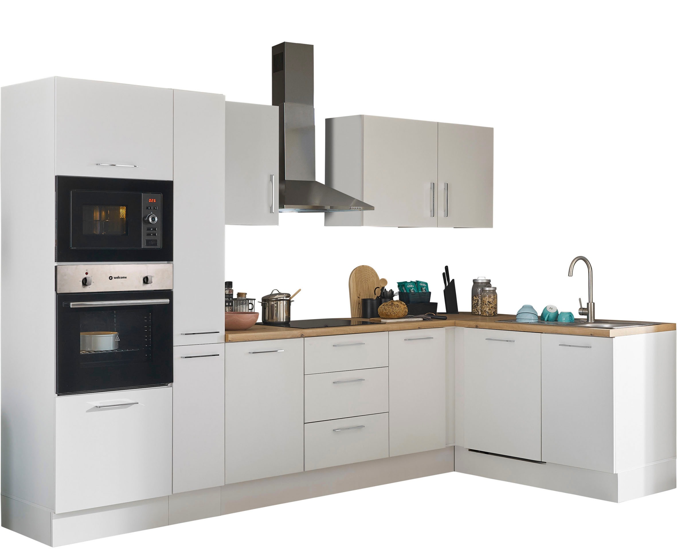 - Winkelküche »Turin« Stellbreite 340x175 cm, wahlweise mit E-GerätenBASIC by BalculinaAktueller Preisab 1.799,99 €KühlschrankProduktdatenblattBackofenProduktdatenblattGeschirrspülerProduktdatenblattDunstabzugshaubeProduktdatenblatt