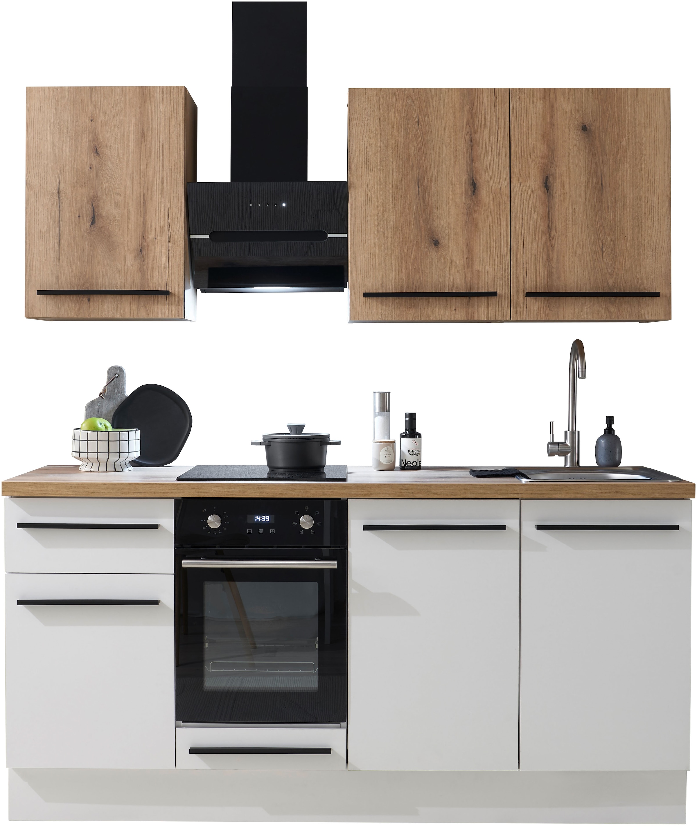 - Küchenzeile »Turin« Breite 210 cm, wahlweise mit E-GerätenBASIC by BalculinaAktueller Preis1.446,99 €DunstabzugshaubeProduktdatenblattHerd-SetProduktdatenblatt