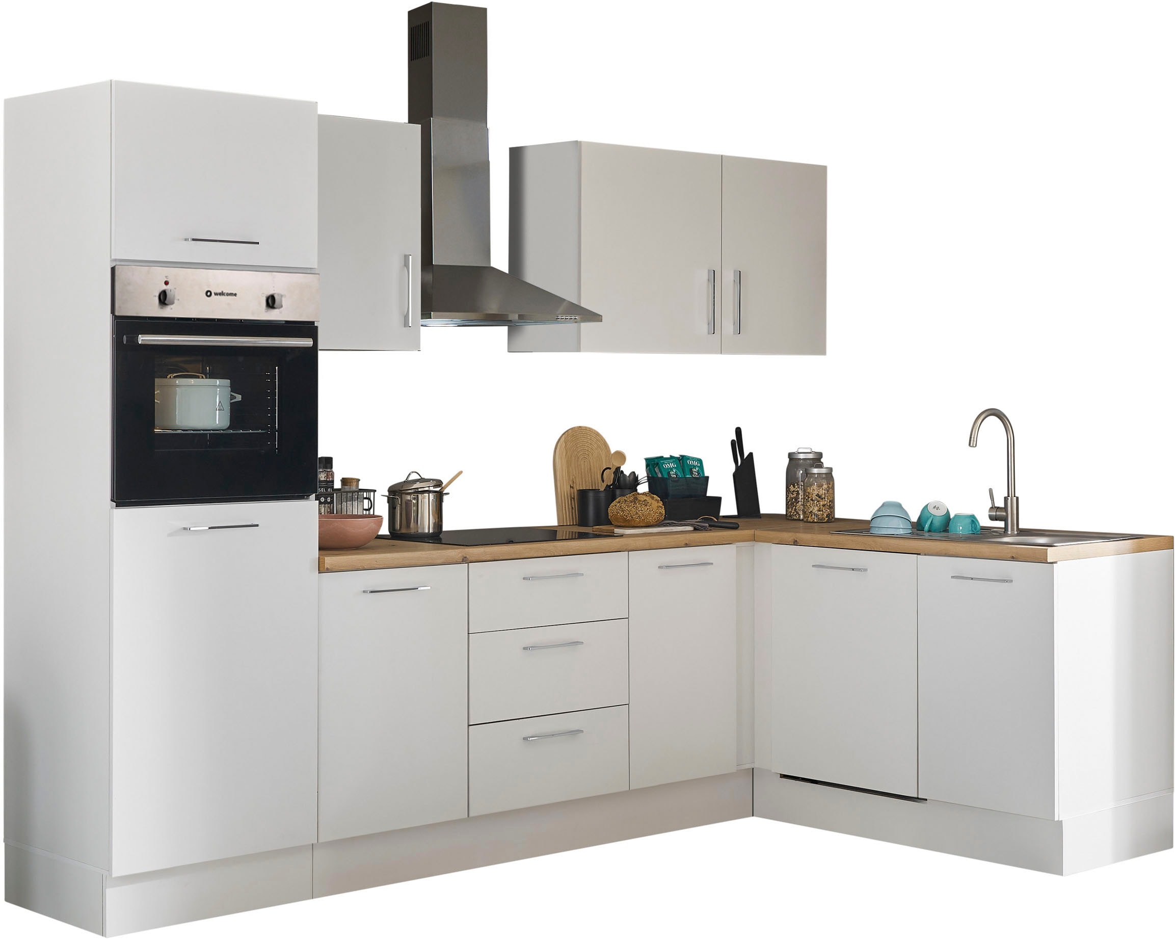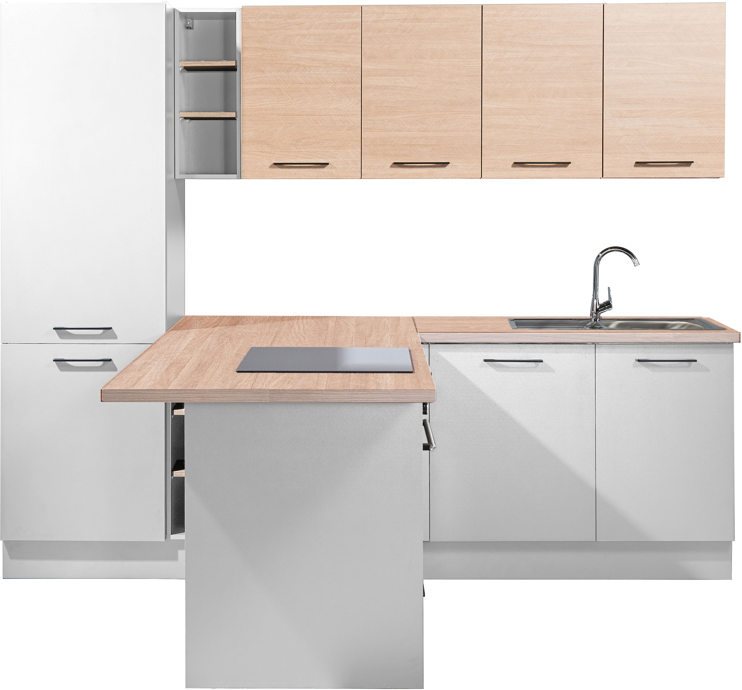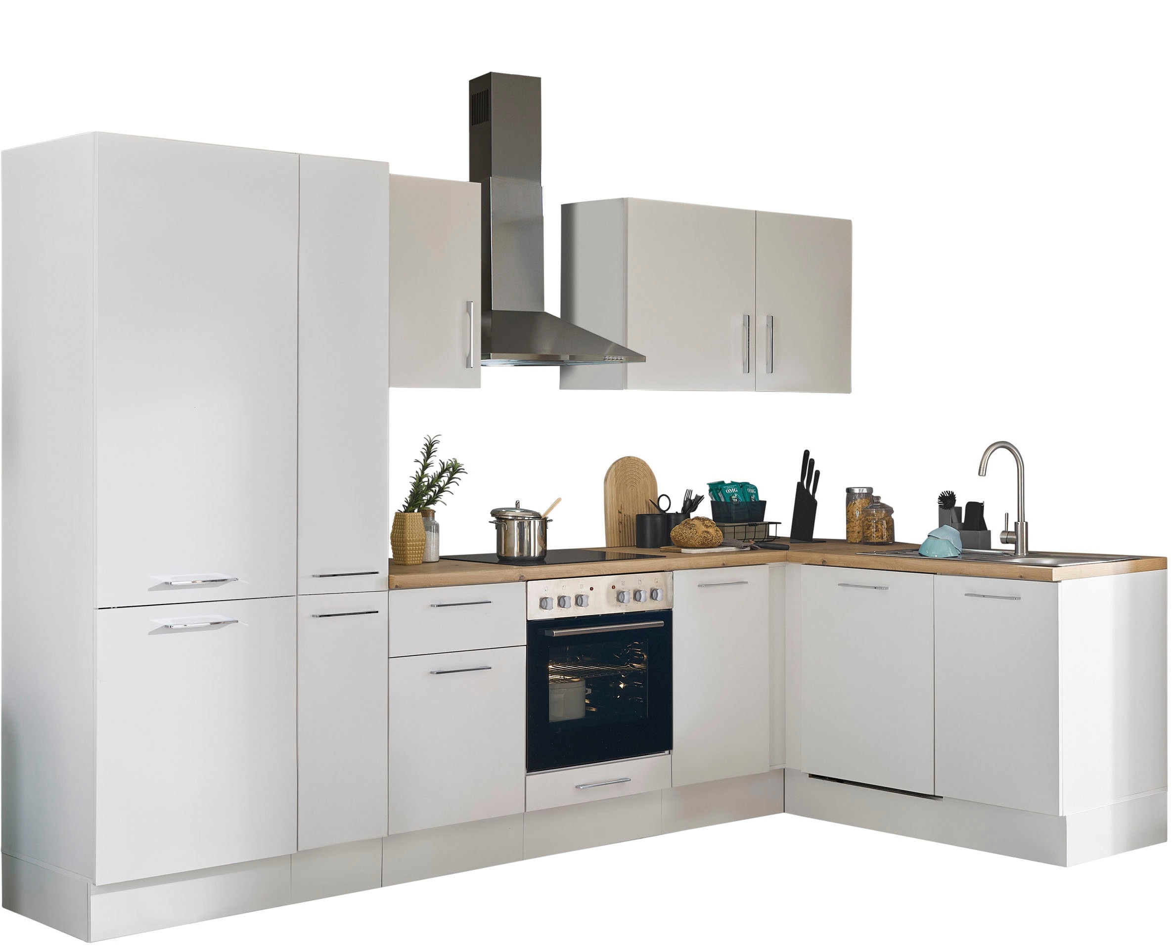 - Winkelküche »Turin« Stellbreite 370x175 cm, wahlweise mit E-GerätenBASIC by BalculinaAktueller Preis3.303,99 €KühlschrankProduktdatenblattBackofenProduktdatenblattGeschirrspülerProduktdatenblattDunstabzugshaubeProduktdatenblatt
