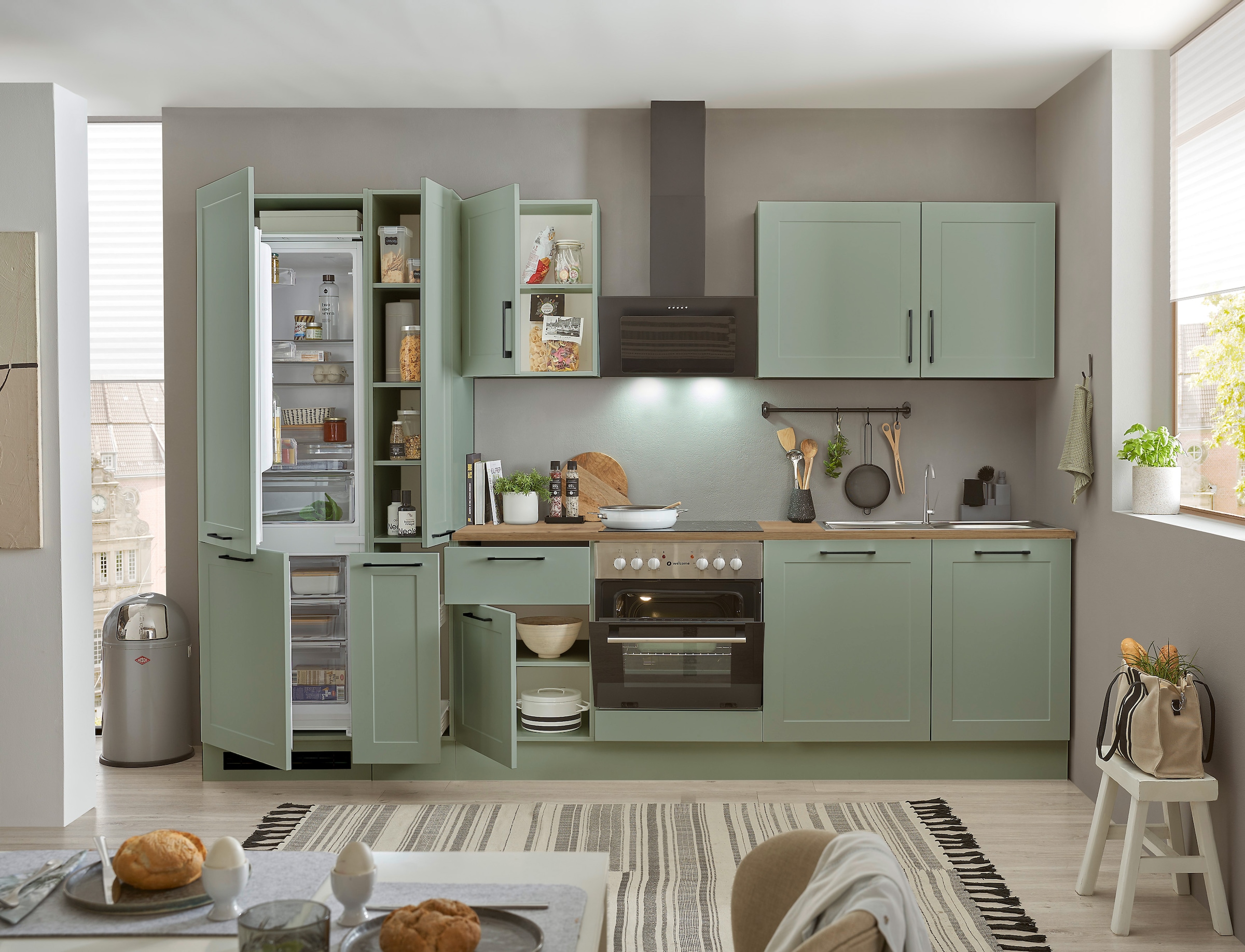 - Küchenzeile »Jazz« Breite 320 cm, wahlweise mit E-GerätenBASIC by BalculinaAktueller Preisab 799,99 €KühlschrankBackofenProduktdatenblattGeschirrspülerProduktdatenblattDunstabzugshaubeProduktdatenblatt