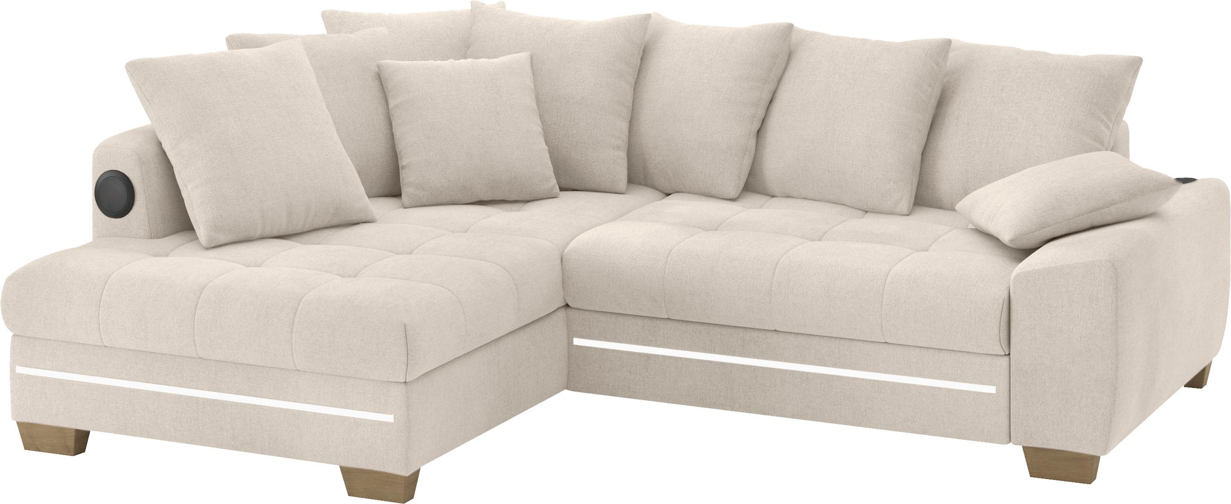 +21 Farben - Ecksofa »Nikita II, L-Form« RGB-LED, Bluetooth-Soundsystem, wahlweise mit Bett,...Mr. CouchUrsprünglicher PreisUVP 2.304,00 €Rabatt- 853,01 €Aktueller Preisab 1.450,99 €