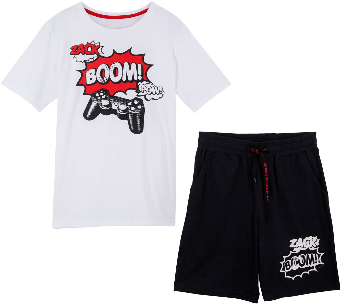 - T-Shirt Set, 2 bequeme Passform, mit kurzem Ärmel, mit Gaming-Print, aus BaumwollebonprixAktueller Preis19,99 €Grundpreis19,99 €pro1 Stk