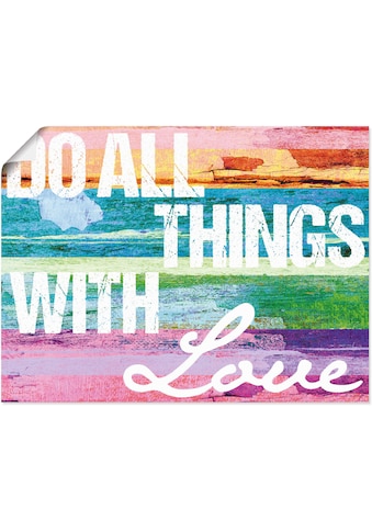 - Wandbild »Tu alles mit Liebe« Sprüche & Texte 1 Stk. tlg. als Alubild, Outdoorbild,...ArtlandUrsprünglicher PreisUVP 16,90 €Rabatt- 5 %Aktueller Preisab 15,99 €