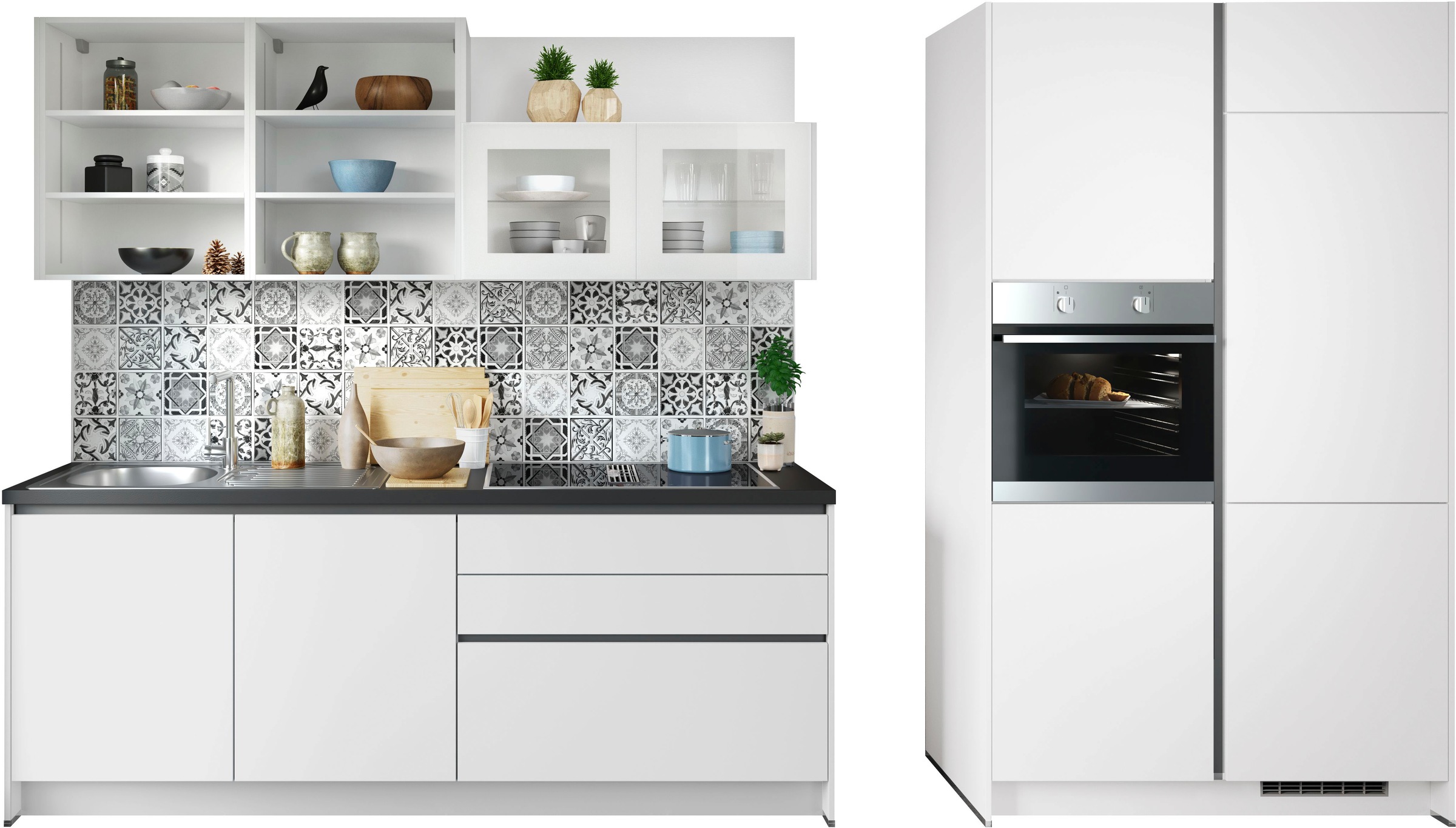 + Farben - Küche »Nisos« Soft-Close, 310 cm, Backofen matt schwarz, Teleskopauszugwiho KüchenUrsprünglicher PreisUVP 4.370,70 €Rabatt- 926,71 €Aktueller Preis3.443,99 €KühlschrankProduktdatenblattBackofenProduktdatenblattGeschirrspülerProduktdatenblattDunstabzugshaubeProduktdatenblatt