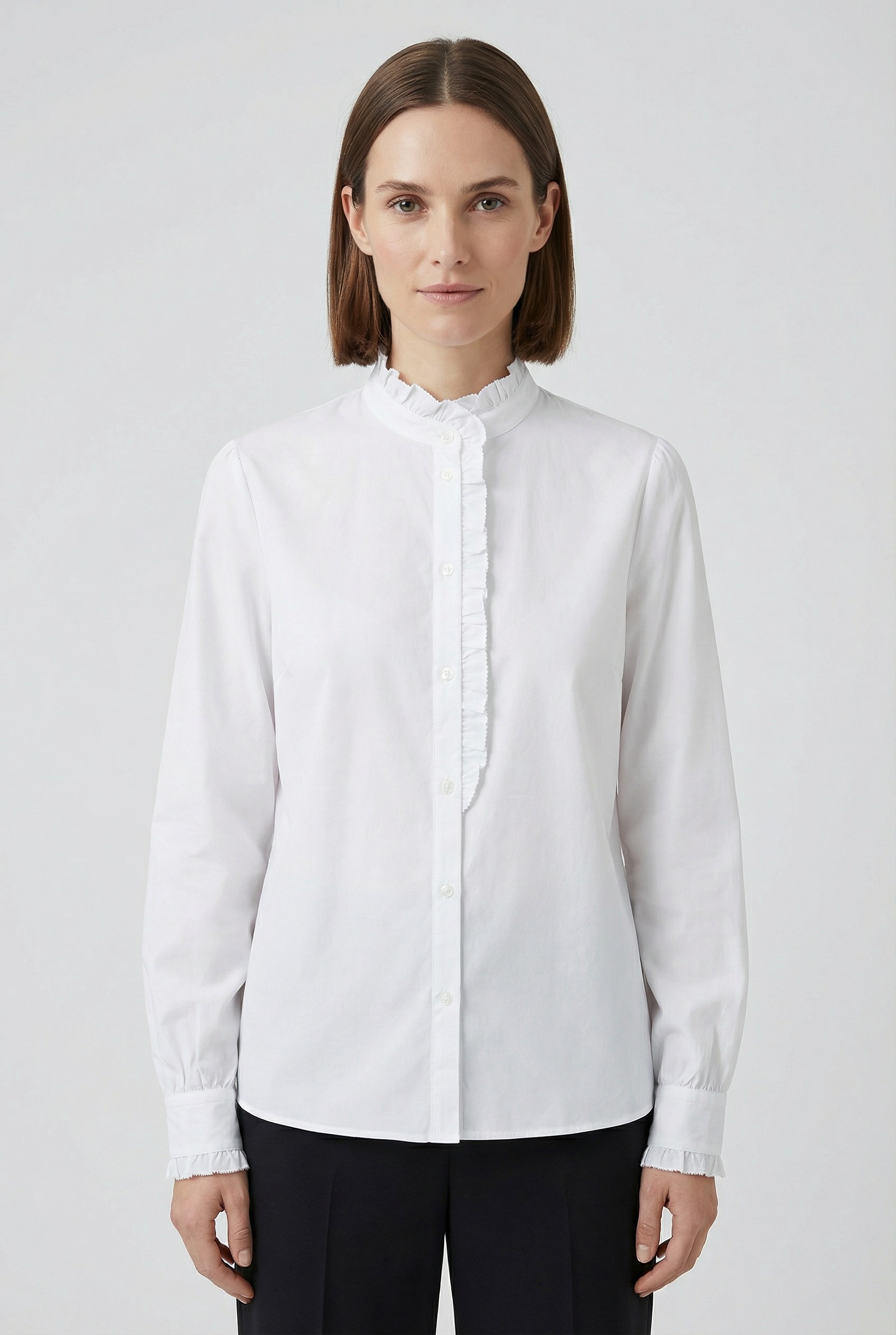Neu - Hemdbluse »Banny Premium Damenmode« mit Rüschen-Details, StehkragenBOSS ORANGEUrsprünglicher PreisUVP 139,95 €Rabatt- 18 %Aktueller Preis113,99 €