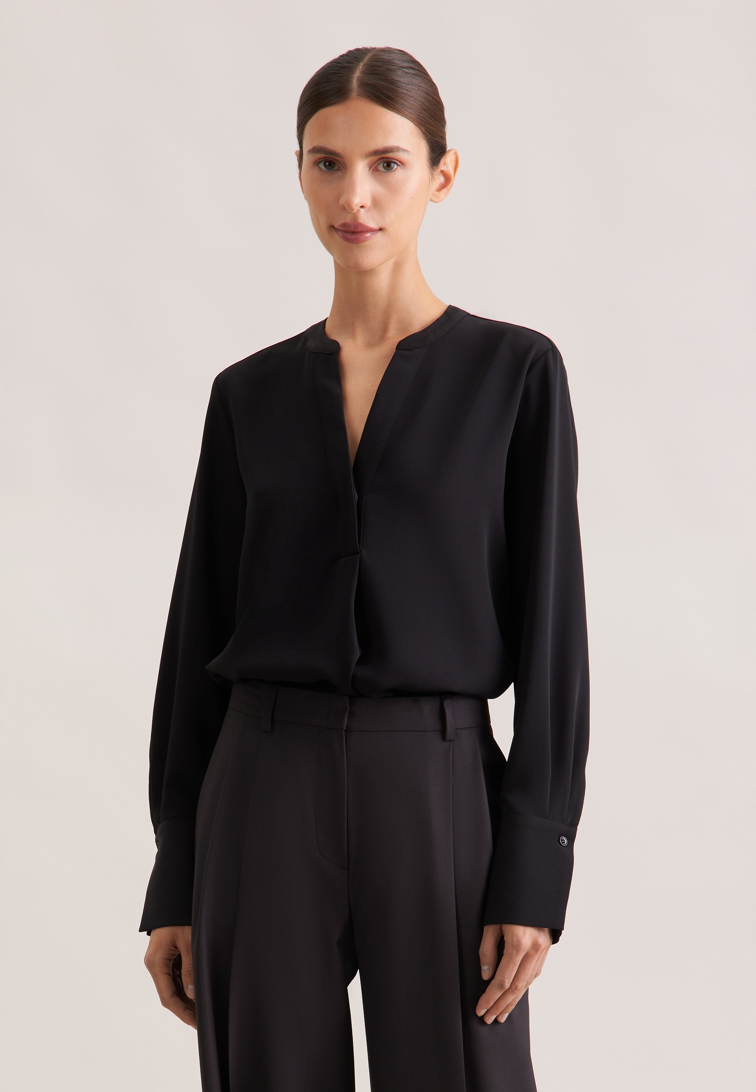 - seidenstickerLongbluse »Schwarze Rose« Langarm Kragen Uni