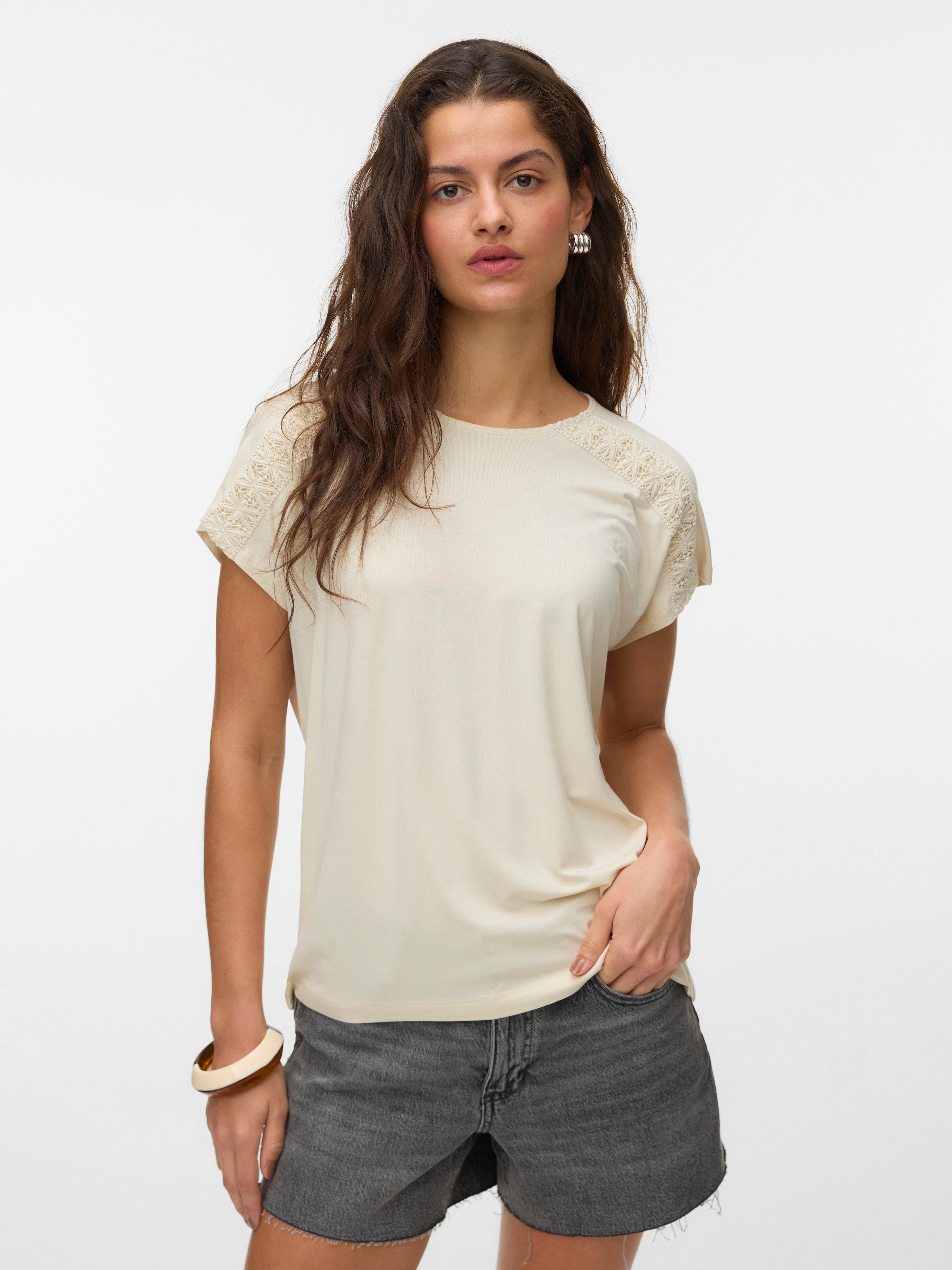 - Spitzenshirt »VMIRIS CROCHET V-NECK T-SHIRT JRS BTQ«Vero ModaUrsprünglicher PreisUVP 26,99 €Rabatt- 14 %Aktueller Preisab 22,99 €