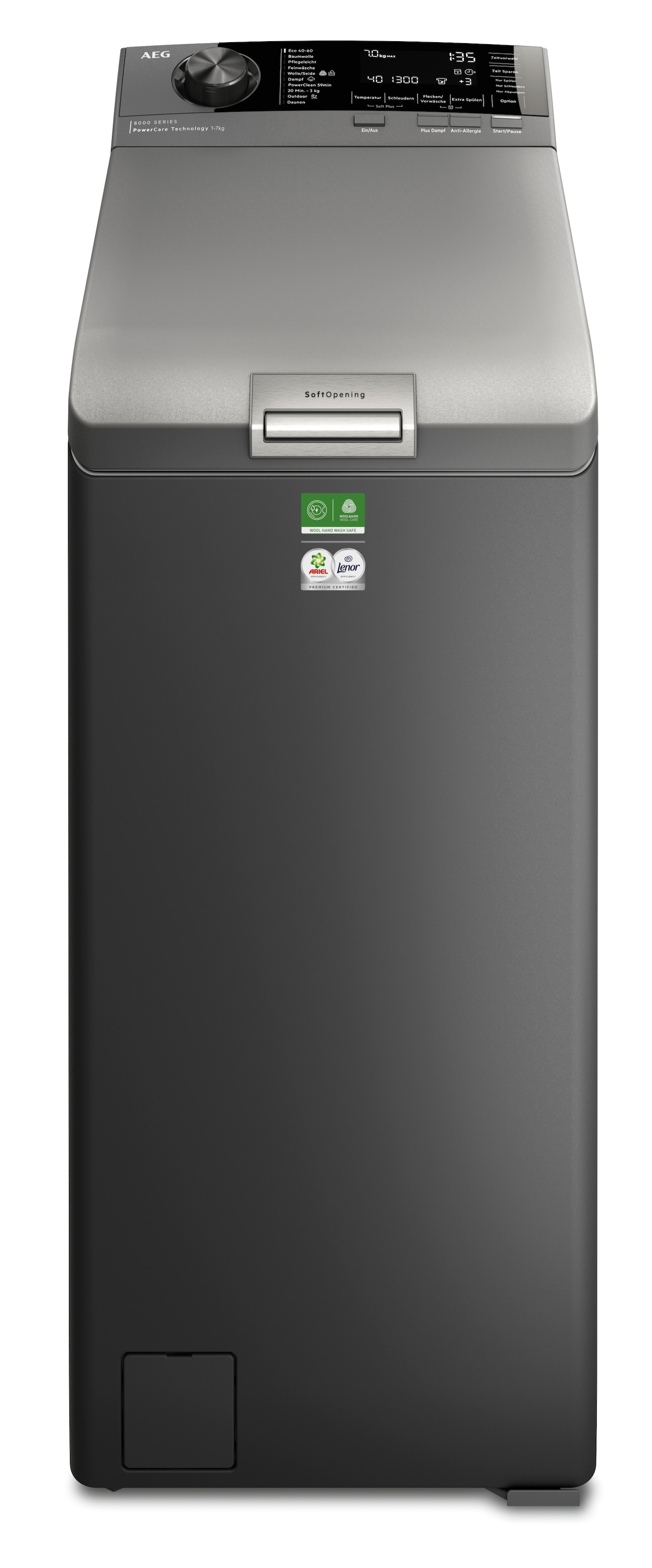 - Waschmaschine Toplader »LTR8S80370« 7 kg MattSchwarz‑Toplader mit PowerClean:...AEGUrsprünglicher PreisUVP 1.724,00 €Rabatt- 574,01 €Aktueller Preis1.149,99 €