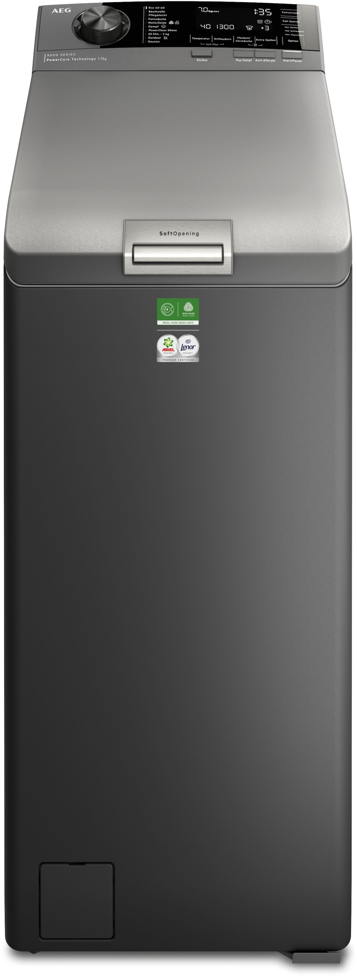 - Waschmaschine Toplader »LTR8S80370« 7 kg MattSchwarz‑Toplader mit PowerClean:...AEGUrsprünglicher PreisUVP 1.724,00 €Rabatt- 574,01 €Aktueller Preis1.149,99 €