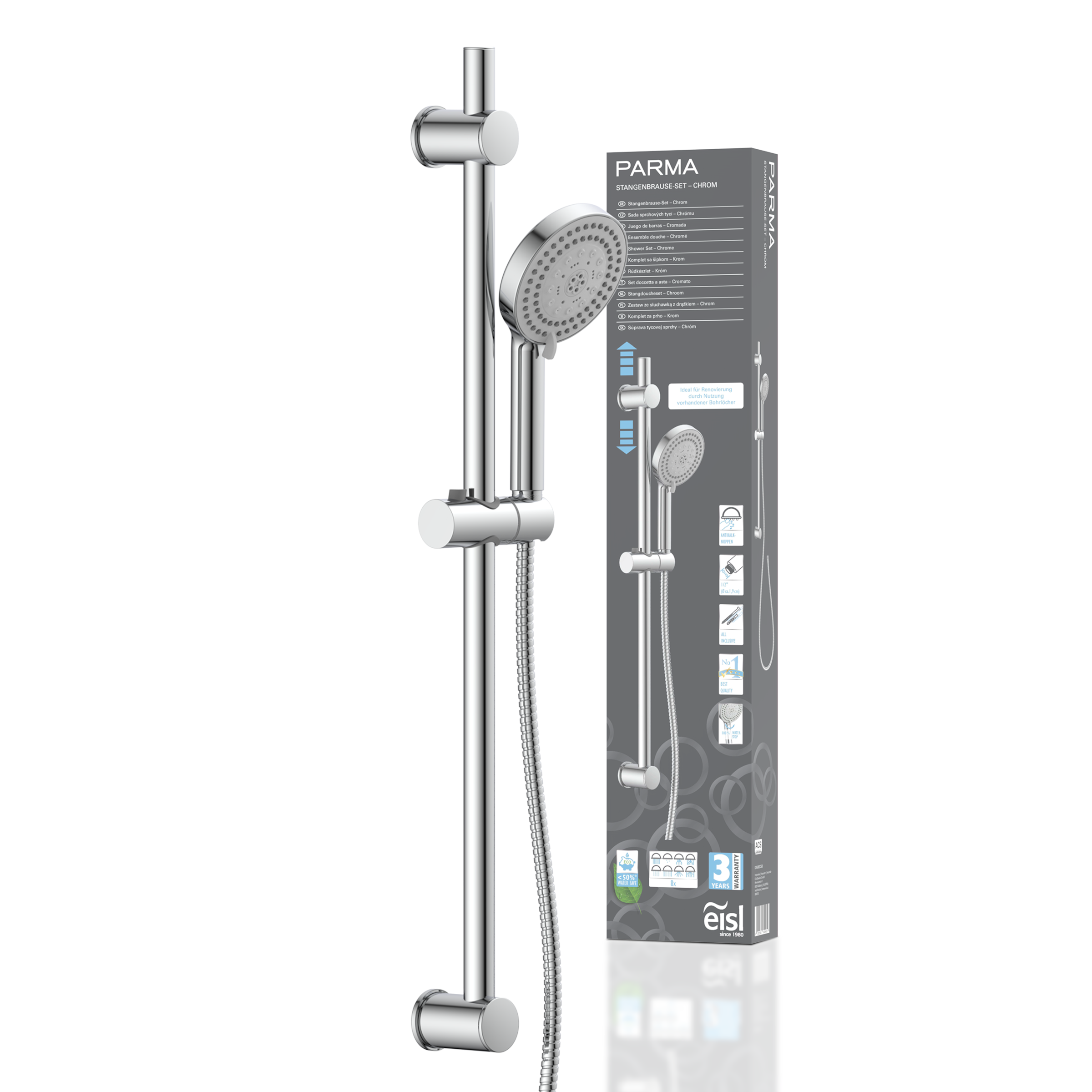 - Brausegarnitur »EASY ENERGY« 1 Stk. tlg. Höhenverstellbar / Antikalk-Noppen / EdelstahlEislAktueller Preis80,99 €