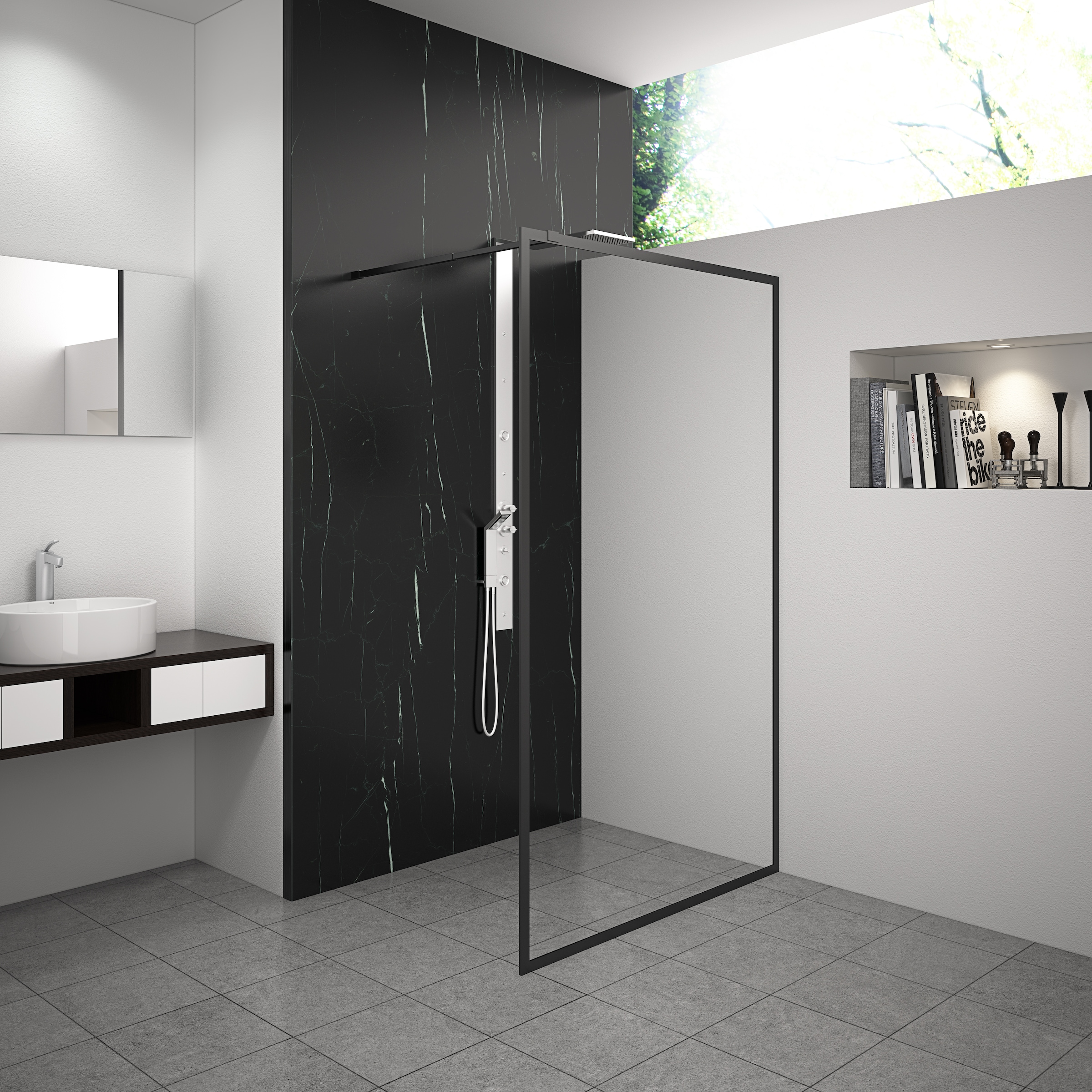 - Walk-in-Dusche inkl. großem Regal in schwarzwelltime by GEOAktueller Preisab 285,99 €