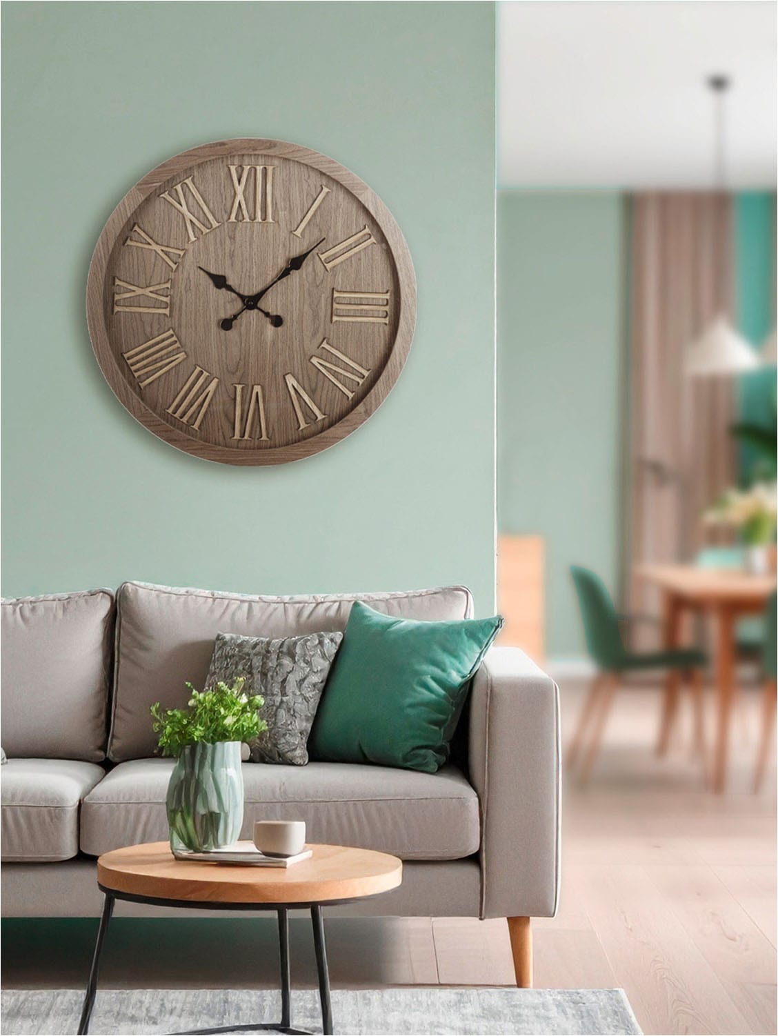 Als Faustregel gilt: Das Zifferblatt sollte sich ungefähr auf Augenhöhe befinden. Das entspricht in der Regel einer Höhe von etwa 1,60 m bis 1,70 m, gemessen vom Boden bis zur Mitte der Uhr. In Wohnbereichen, in denen man überwiegend sitzt, geht man indes von einer ungefähren Höhe von 1,45 m bis 1,50 m aus. Je nachdem, wo du die Uhr nutzen willst, liest du so die Zeit aus dem Stand oder im Sitzen bequem ab.