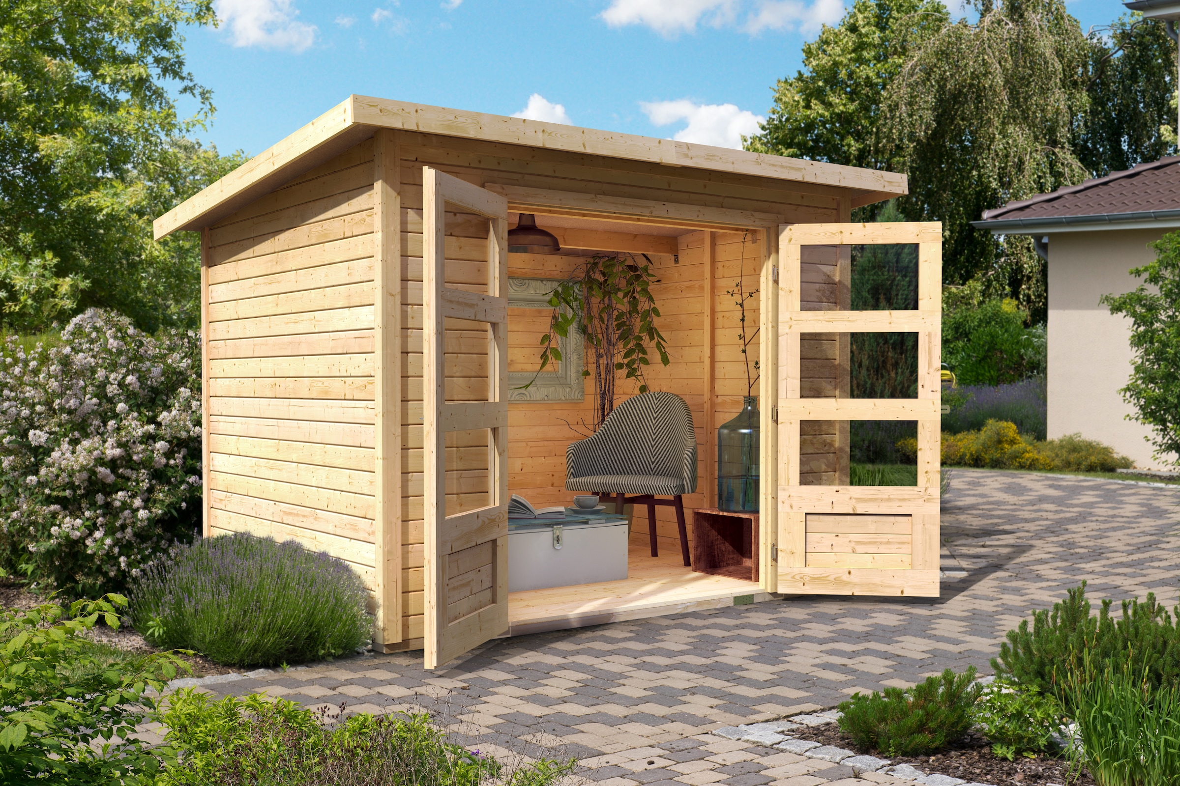 - Gartenhaus »"Remus" Pultdach 2,97x2,97m inkl Anbaudach 3m naturbelassen« Gartenhaus...KaribuAktueller Preis2.414,99 €