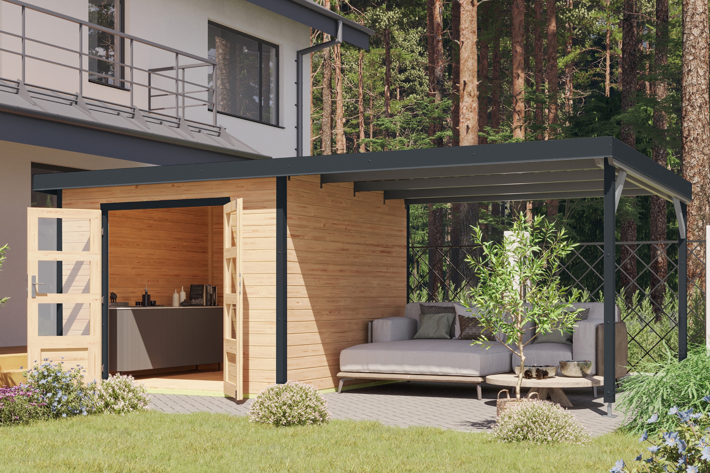 - Gartenhaus »Plutino 6 SET, in verschiedenen Farben« inkl. AnbaudachKaribuAktueller Preis3.359,99 €