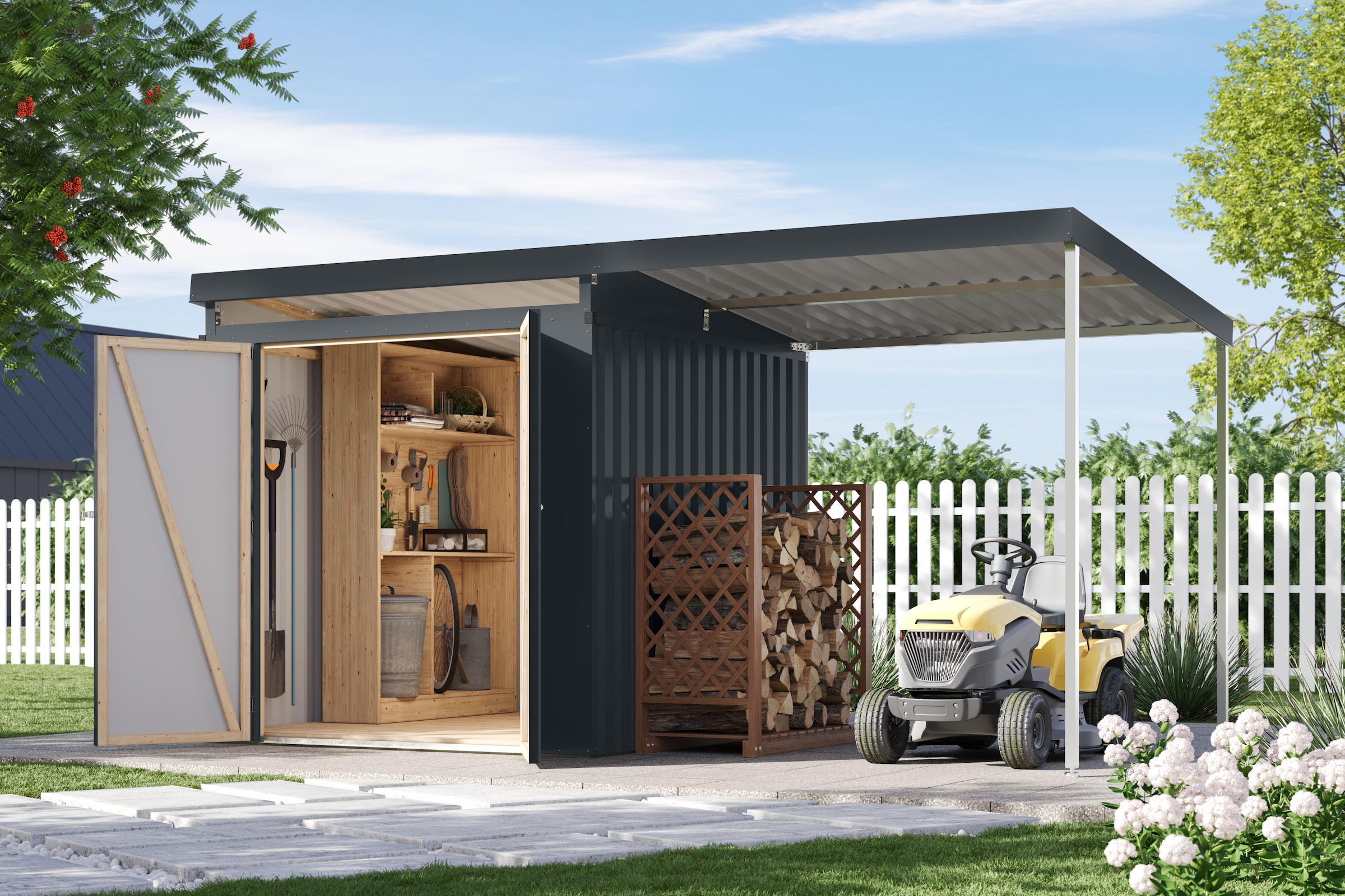 - Gerätehaus »Stefano mini« Stahl, mit seitlichem AnbauKONIFERAUrsprünglicher PreisUVP 999,99 €Rabatt- 194,00 €Aktueller Preis805,99 €