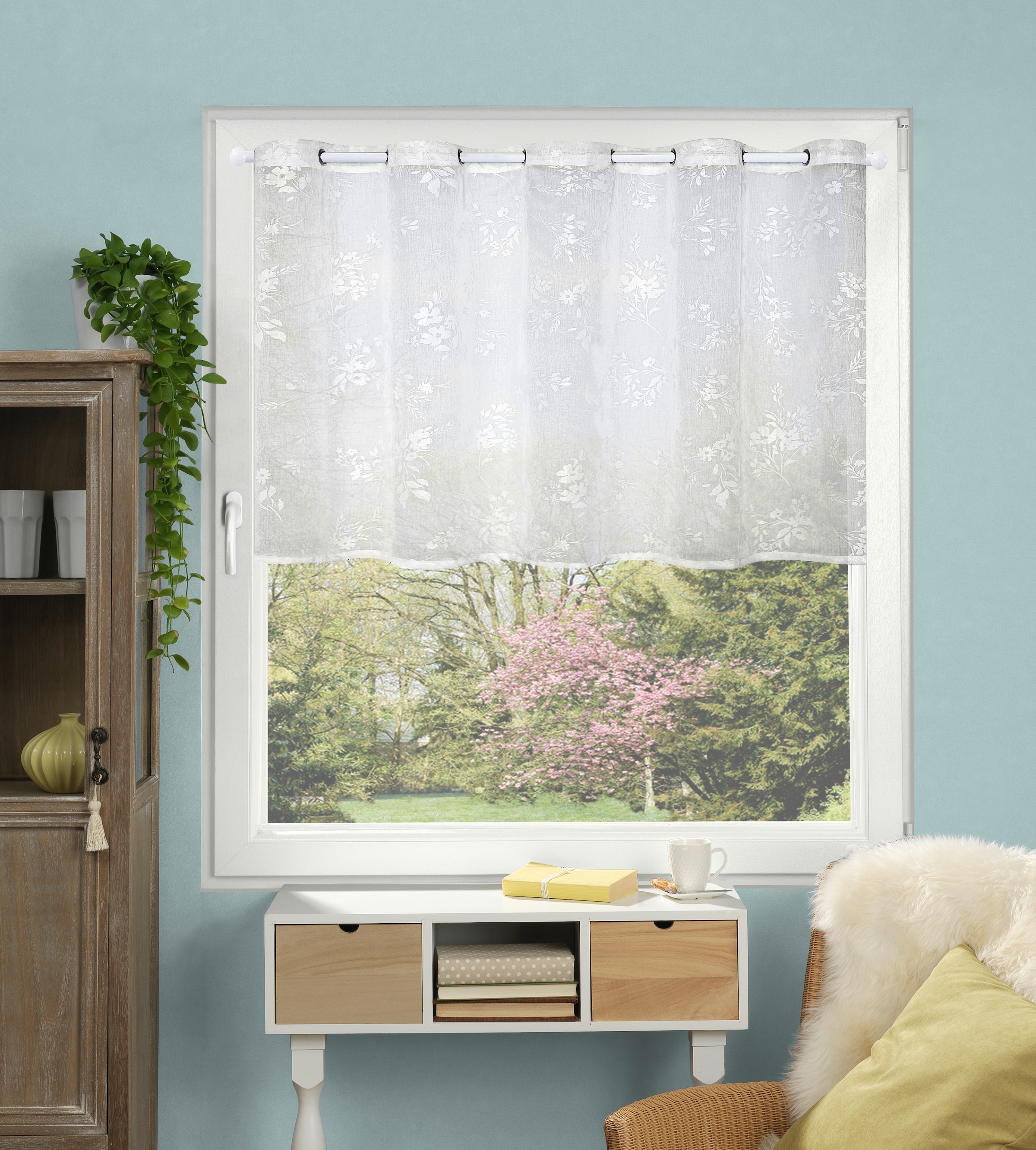 Scheibengardinen sind Blickschutz und Dekoration in einem. Die in der Regel halbhohen Vorhänge lassen viel Licht durch das Fenster und zeigen sich in zahlreichen verführerisch schönen Designs, Farben und Mustern.