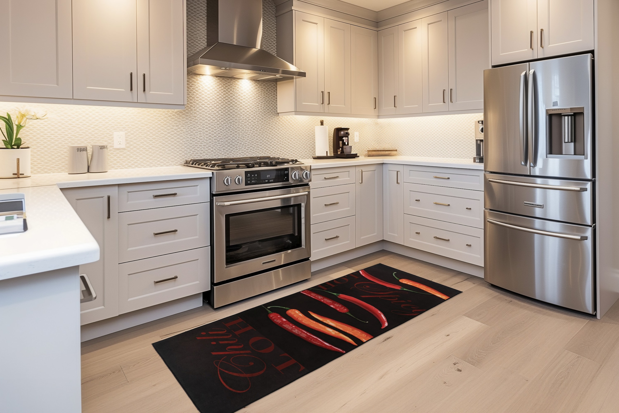 Die vielfältigen Einsatzmöglichkeiten von Küchenteppichen erlauben es dir, sie auf deine spezifischen Bedürfnisse und deinen persönlichen Geschmack anzupassen. Ob du einen großen Teppich bevorzugst, der die meiste Fläche deiner Küche abdeckt, oder dich für mehrere kleinere Teppiche entscheidest, die verschiedene Bereiche abgrenzen, bleibt dir überlassen.