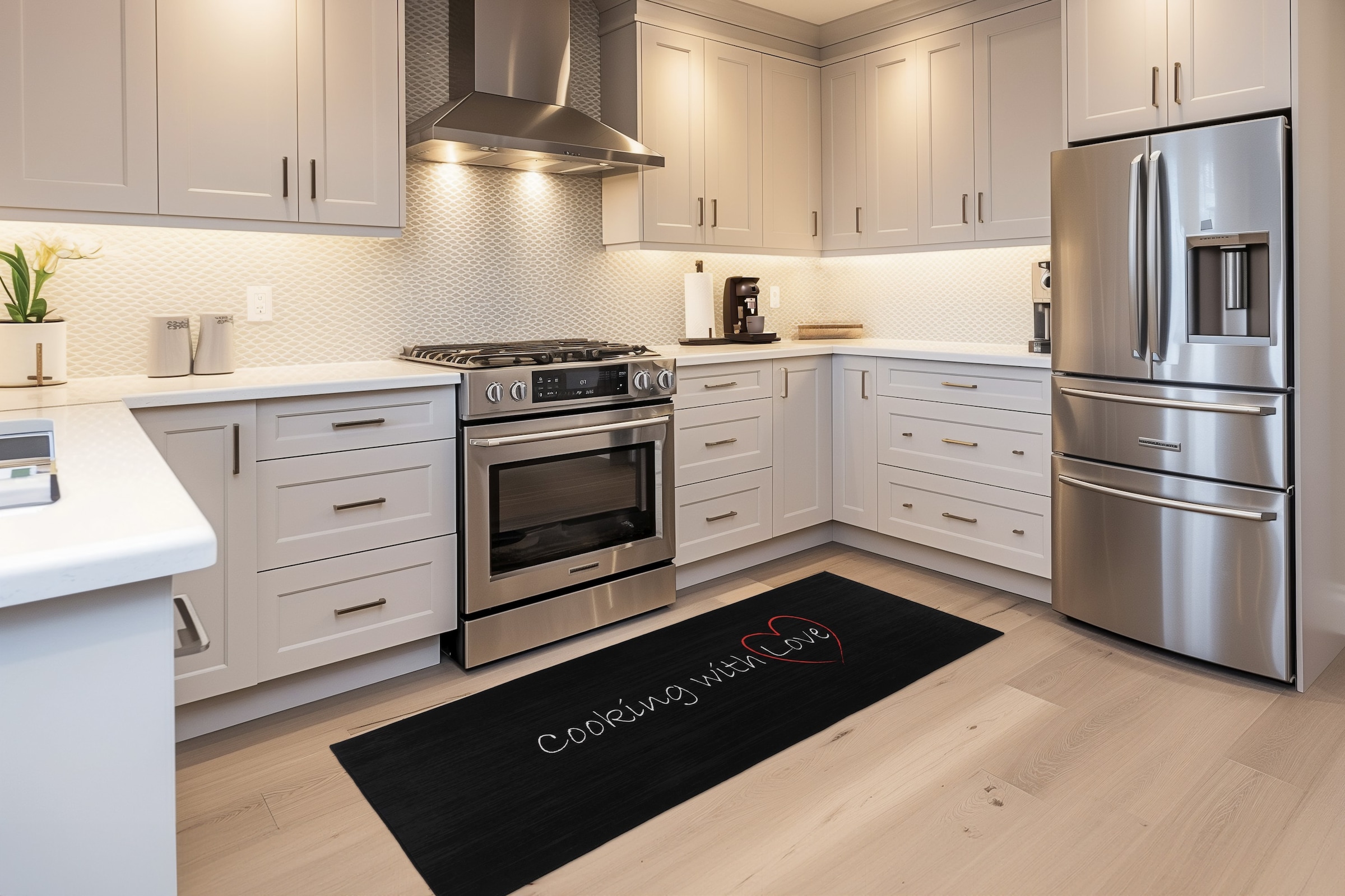 Ein Küchenteppich bietet viele praktische und ästhetische Vorteile und ist somit ein wertvolles Element für dein Zuhause. Er kann für Wärme und Komfort sorgen, beim Arbeiten in der Küche und gleichzeitig das Design und den Gesamteindruck der Küche erheblich verbessern.