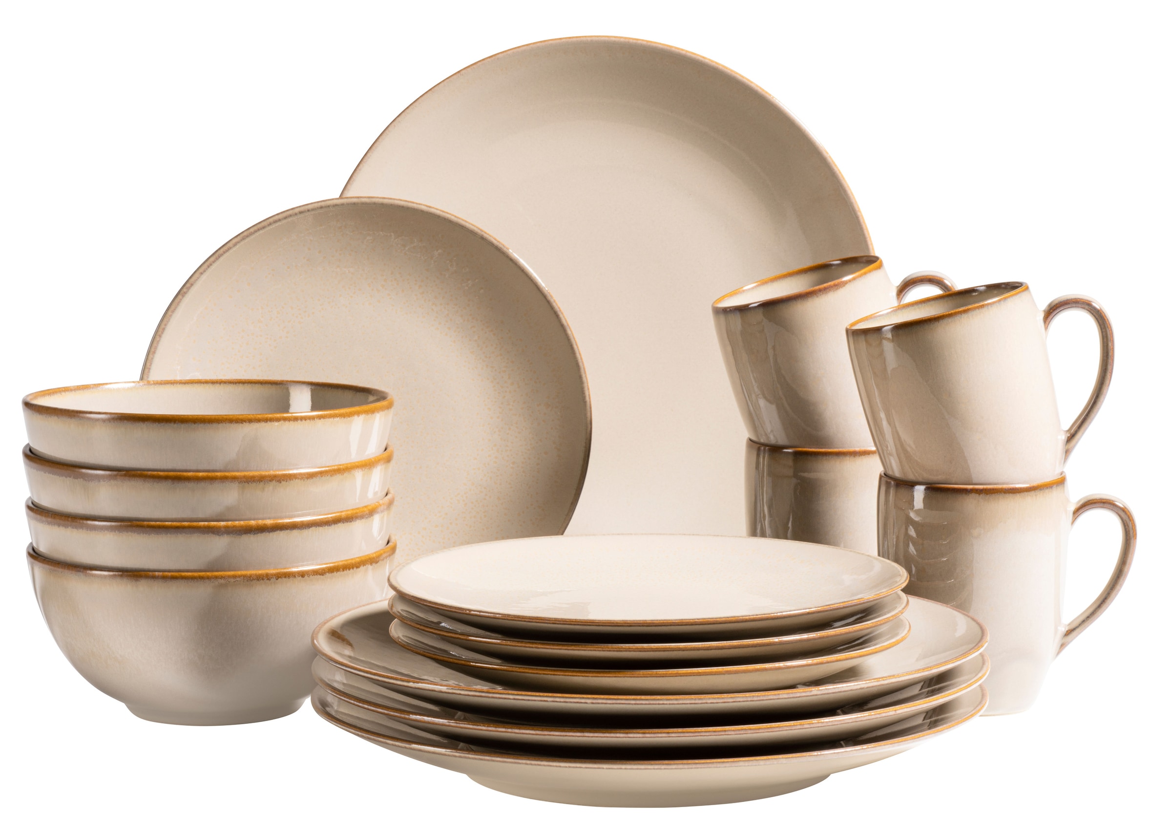 - Kombiservice »Geschirr-Set Stockholm, 16-teilig« rund, sand/taupe, spülmaschinen- und...van WellUrsprünglicher PreisUVP 79,99 €Rabatt- 35 %Aktueller Preis51,99 €