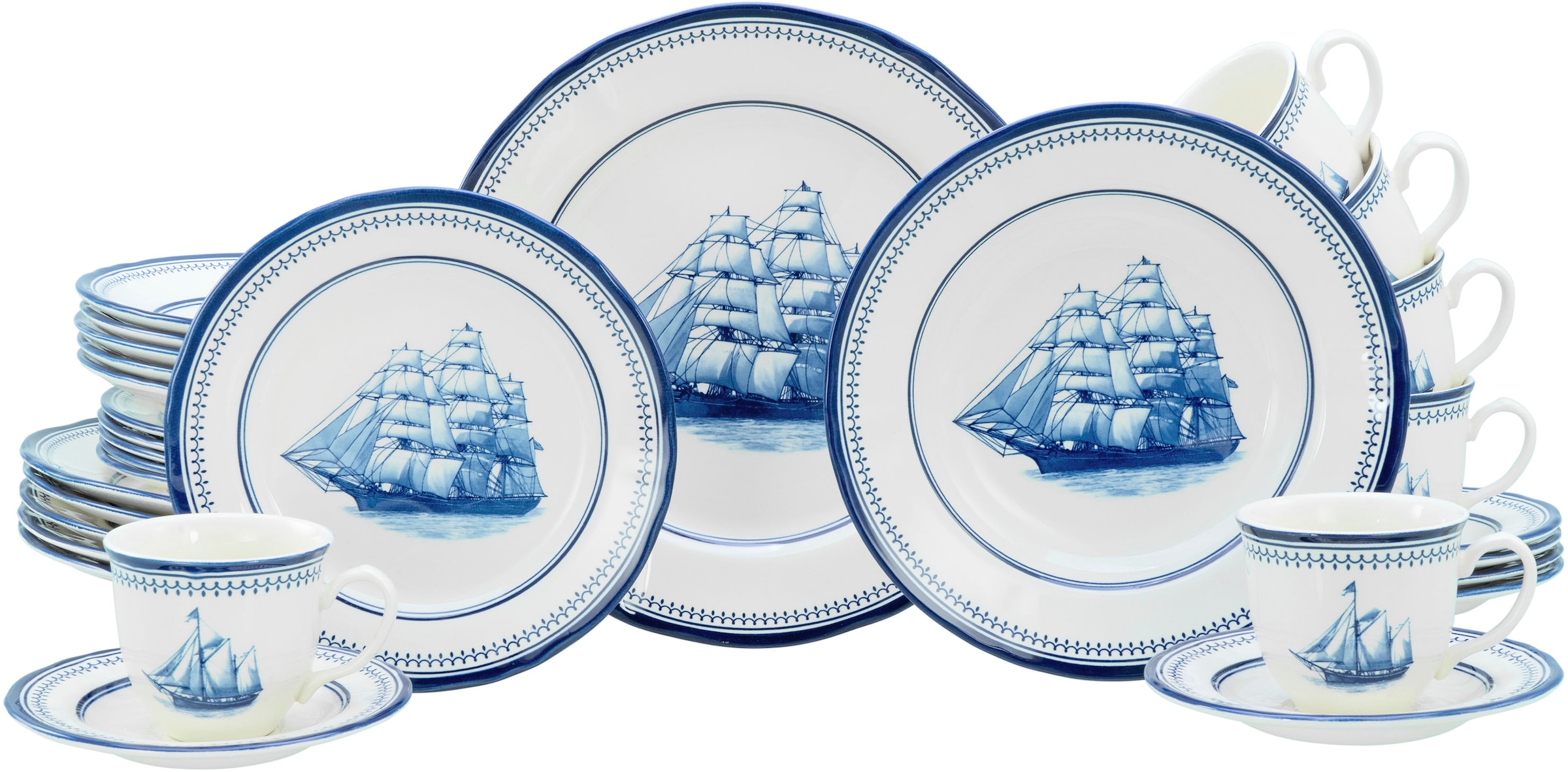 - Kombiservice »Segelschiff, Service 30-tlg.« Elegante Fahnenform, SchiffsdekorCreaTableUrsprünglicher PreisUVP 299,99 €Rabatt- 152,00 €Aktueller Preis147,99 €