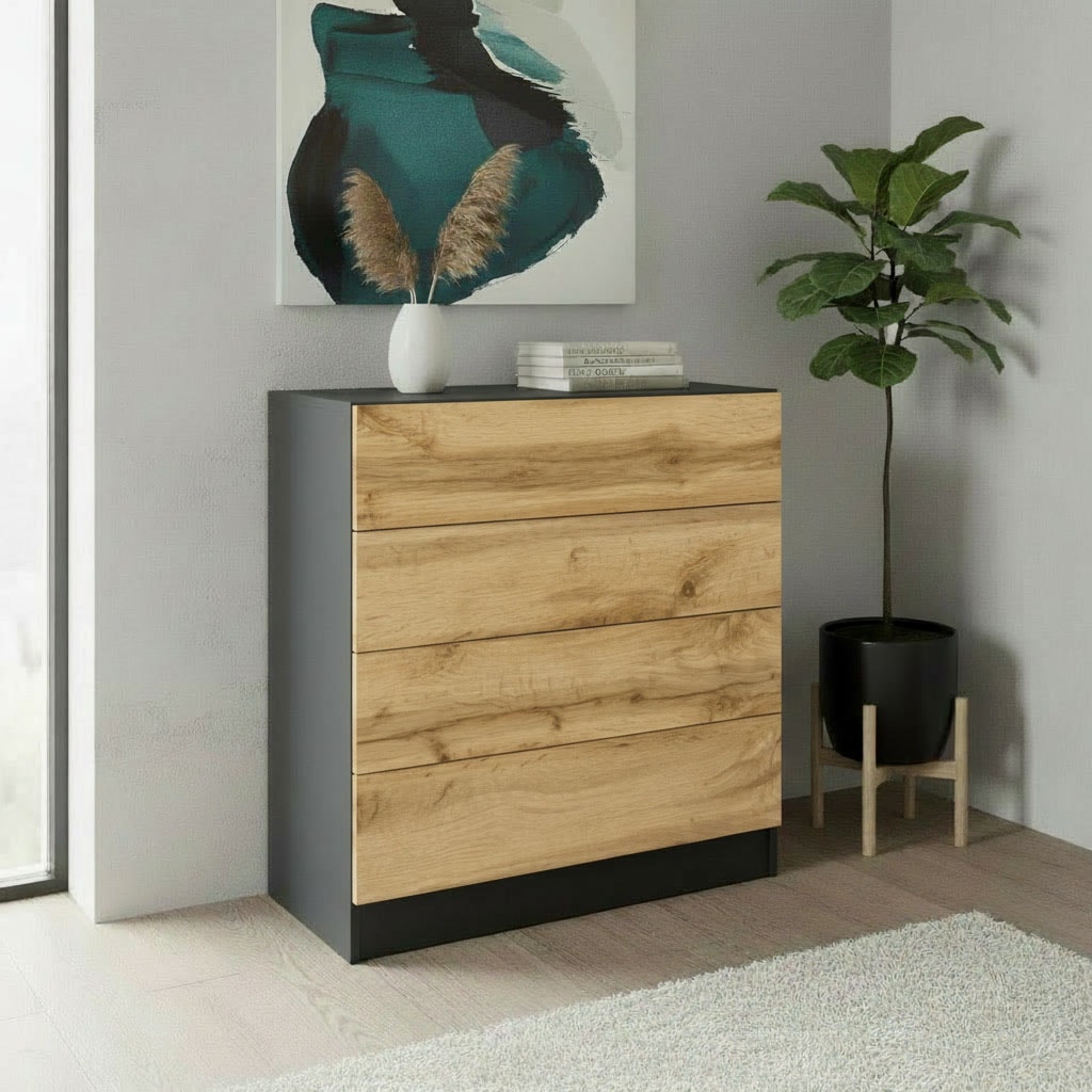 + Farben - Kommode »Vaasa, Kommode mit 4 Schubkästen auf Kugelführungen«borchardt MöbelUrsprünglicher PreisUVP 169,00 €Rabatt- 19 %Aktueller Preis135,99 €