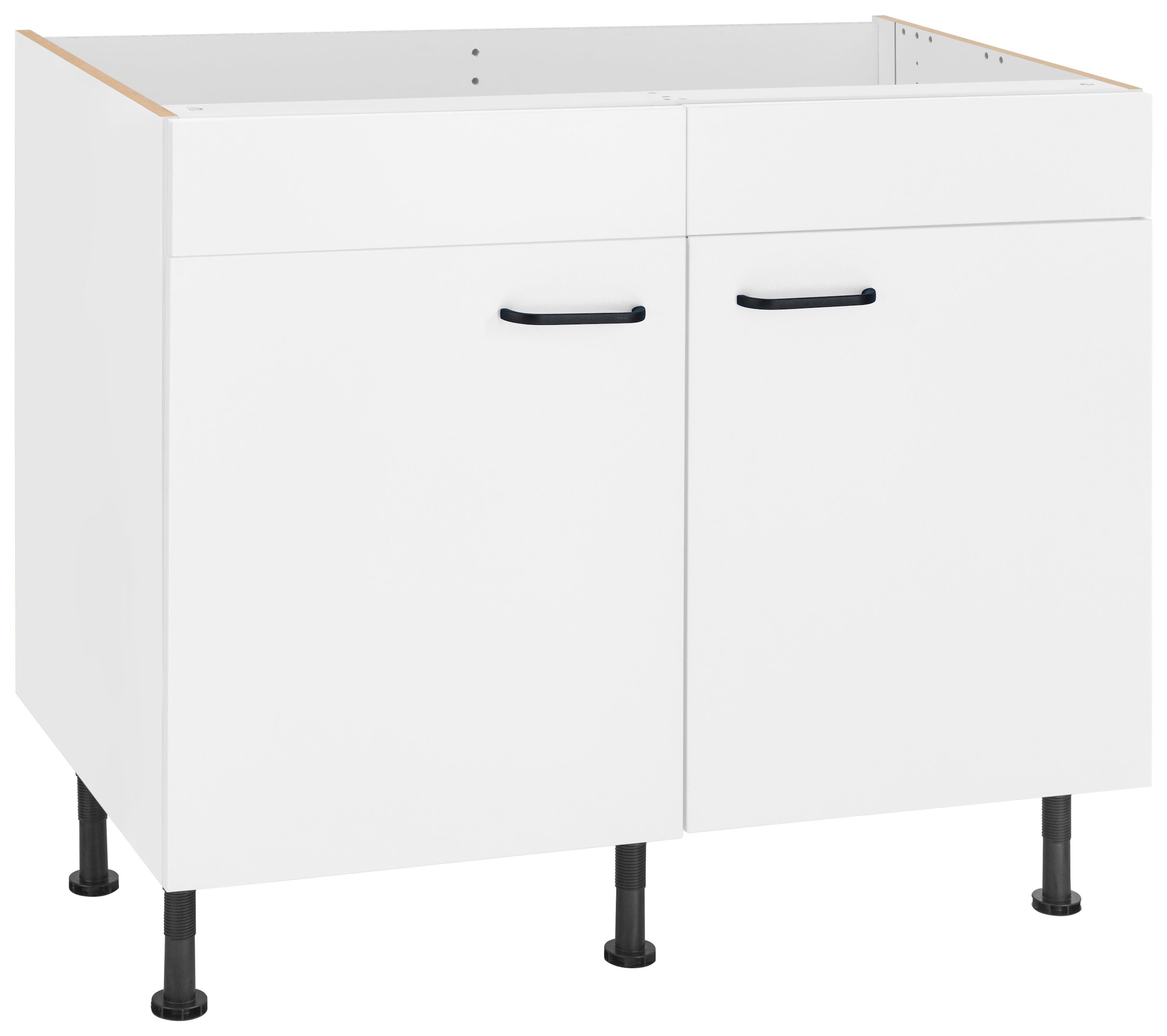 - Spülenschrank »Bern« 100 cm breit, mit 2 Türen, höhenverstellbare Füße, mit MetallgriffenOPTIFITUrsprünglicher PreisUVP 169,00 €Rabatt- 22 %Aktueller Preis130,99 €+ Farben